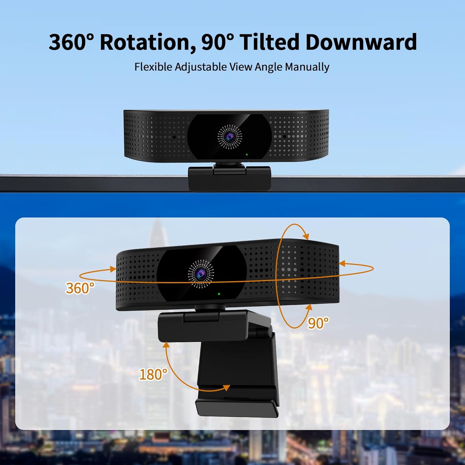 [1080P 30fps] With 1080P 30FPS, you can enjoy sharp and smooth video. 92° wide-angle lens can show more in the screen. Plus 360°Rotation and 90°downward tilted helps to adjust the camera view, making it ideal for gaming, video calls, online teaching. Enjoy exceptional clarity