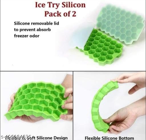 2 Pack Silicone Ice Cube Trays with Flexible 37-Ice Trays BPA Free, for Cake Chocolate Mould Kitchen Baking Tools, Cocktail, Stackable Flexible Safe Ice Cube Molds (Pack of 2) Multicolor|BHR-P538
