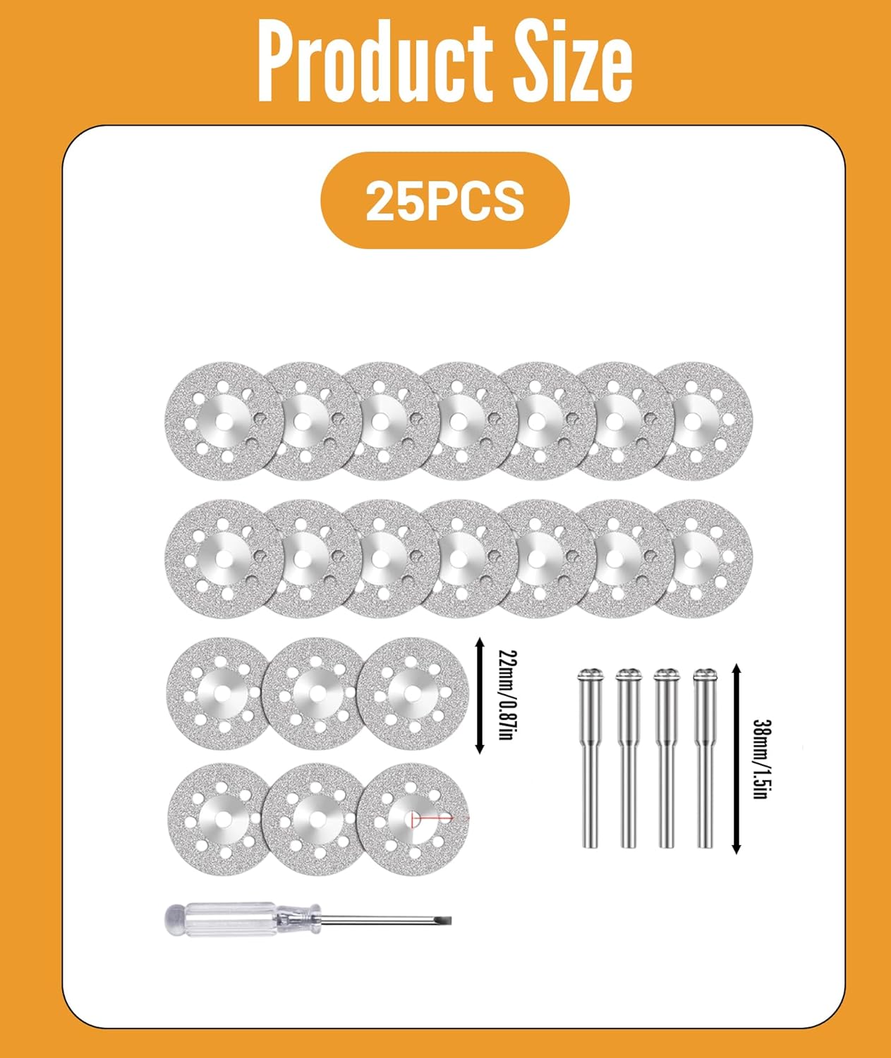 25PCS High Speed Steel Cutting Discs, Tiles Cutting Blade, Circular Saw Blade, Rotary Tool Kit for Ceramic Tile and Stone Cutting, Precision Cutting Discs for DIY and Professional Use