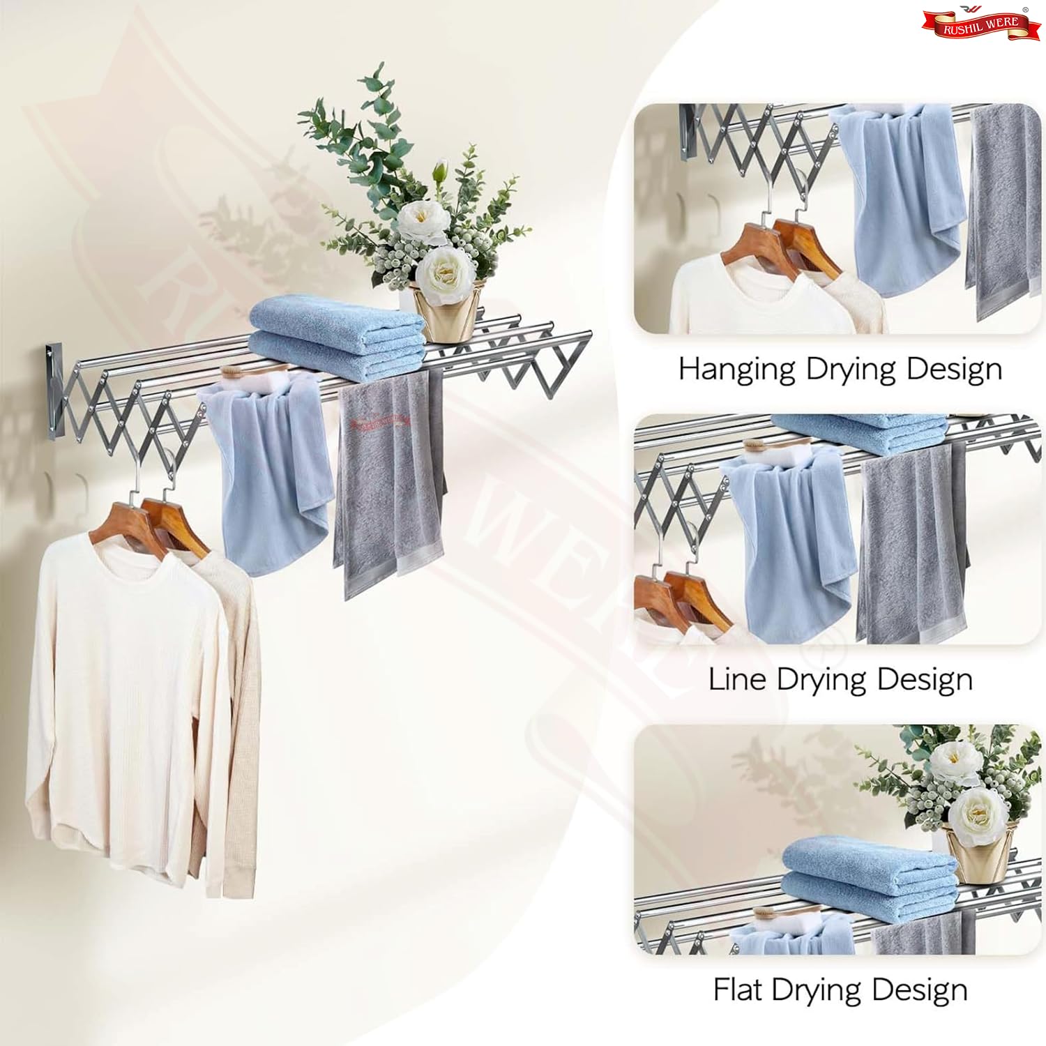 Modern Aesthetic: Boasts a sleek, contemporary design that complements any decor, adding a touch of elegance to your laundry area. Its minimalist look is both functional and stylish. Enhance your space with this modern drying solution.