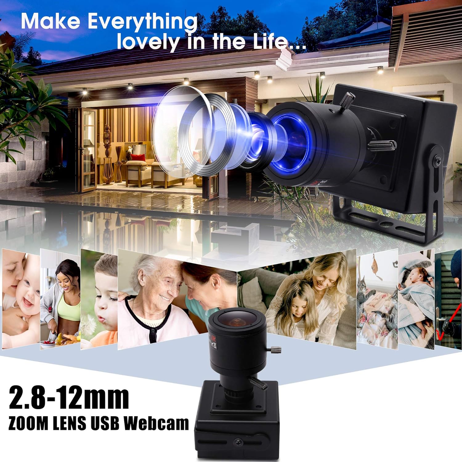 3MP USB Camera 2.8-12mm varifocal Lens Webcam Webcamera for Windows Android Linux Mac Video Comference Webcams Plug &Play OTG USB 2.0 Compact Security Camera