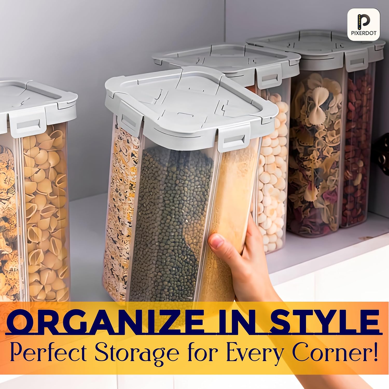 Perfect for storing rice, wheat, lentils, flour, cereals, dry fruits, nuts, pet food, coffee beans, sugar, and more, this large-capacity kitchen organizer will transform the way you store and access your everyday essentials!