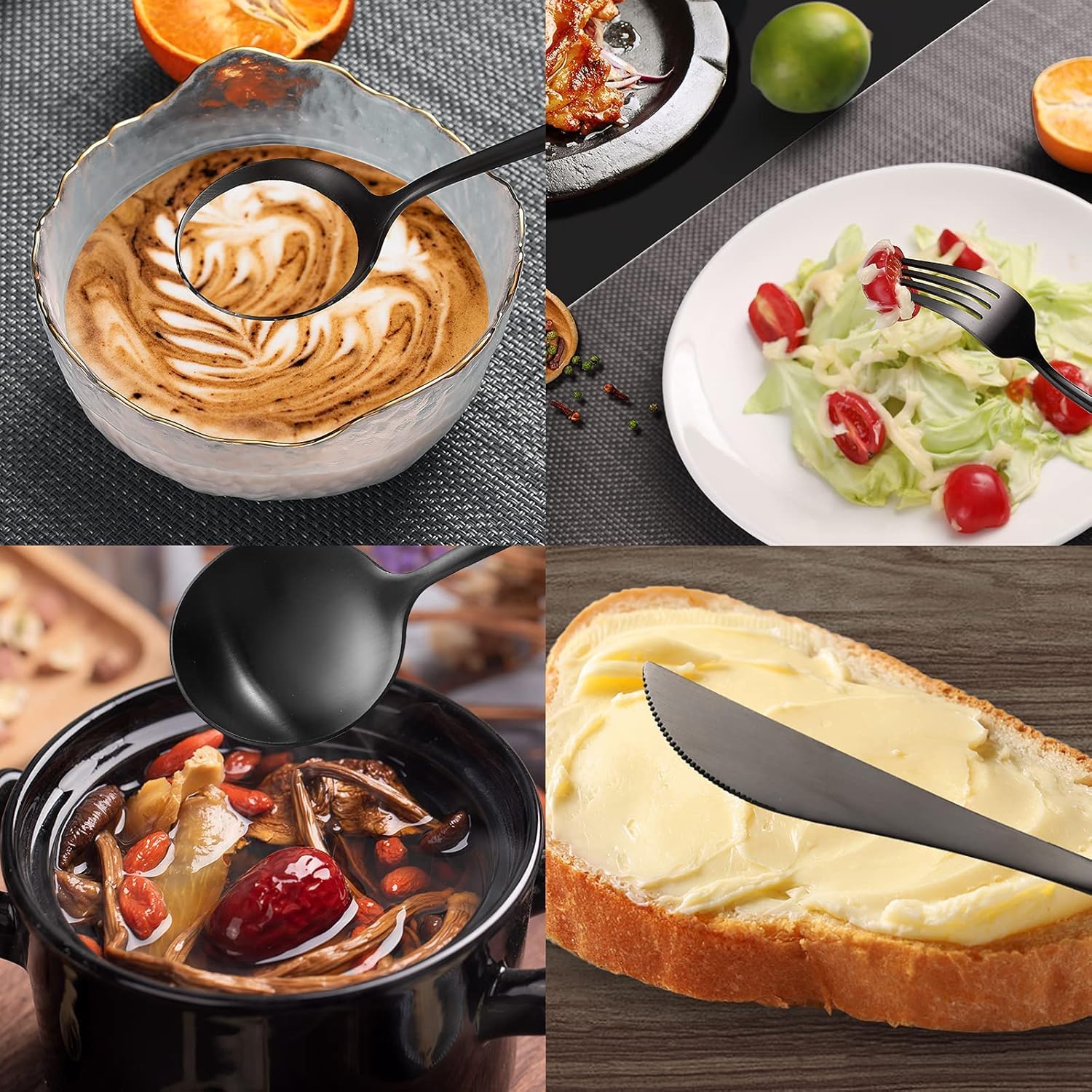4-Piece French Style Dinner Knife | Stainless Steel Flatware Steak Knives Set | Elegant Dishwasher-Safe Silverware Cutlery Set for Home, Restaurants & Gifting (Matte Black)