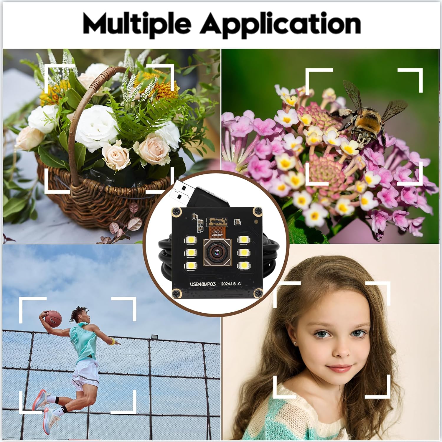 48MP Ultra HD USB Camera: 48 Megapixel usb webcam camera, 200ms fast autofocus speed. Super Image reality, real color reproduction, without interpolation, Max Resolution: 8000(H) X 6000(V) 48 Megapixel.