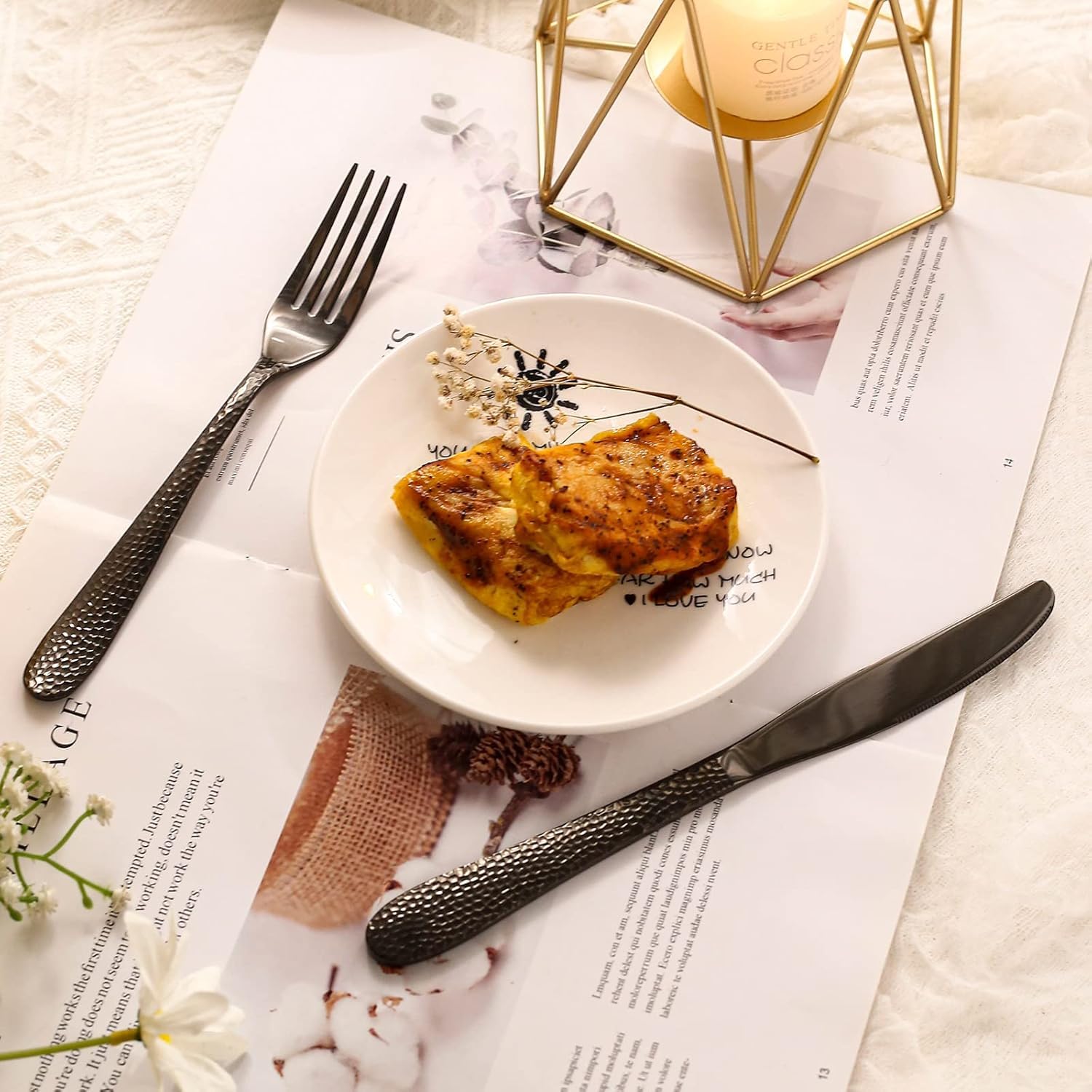 Elegant Hammered Charcoal Black Design: These 8.1″ dinner spoons feature a stunning hammered texture and Charcoal Black-like finish, adding sophistication and style to any dining table.