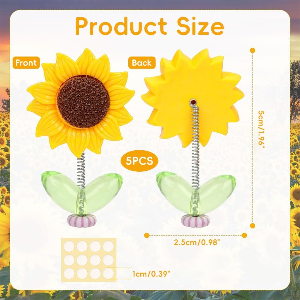 5Pcs Mini Sunflower Car Decoration 2.36 inches Swing Sun Flower Car Dashboard Decoration Items Self Adhesive Removable Resin Sun Flower Decoration for Home Office Desk, Car Gadgets Latest 2025