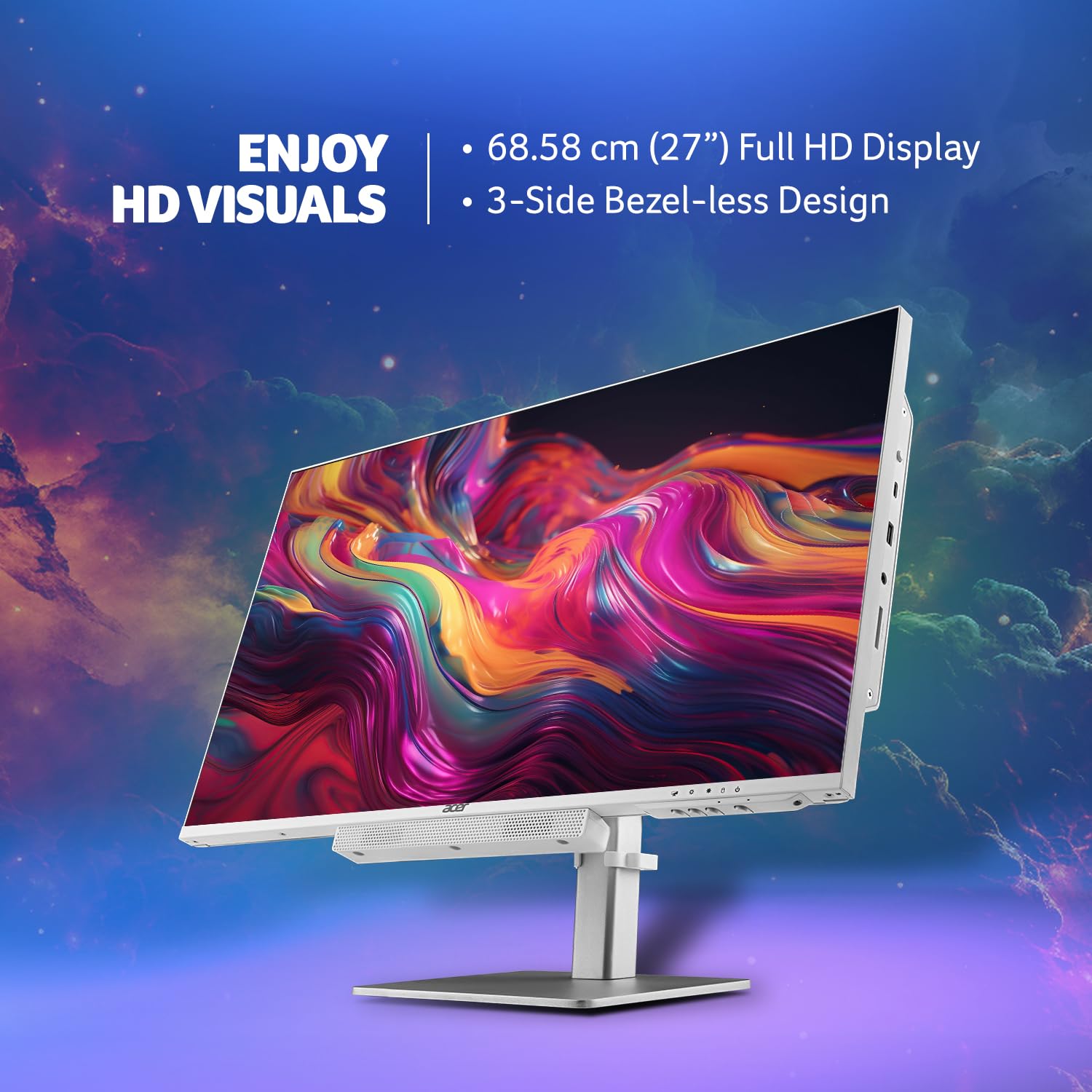 Display: 68.58 cm (27″) Full HD IPS Screen for ultra-clarity picture quality, 3-Side Bezel-less Design