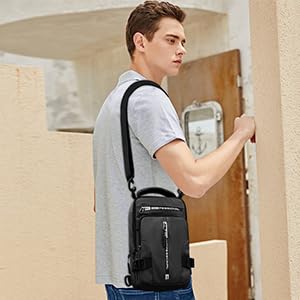 Shoulder bag for men is made of high quality nylon waterproof material. excellent workmanship which shows your outstanding temperament. lightweight shoulder bag for men sits nicely on your back/chest and isn’t to chunky or clunky on body frame