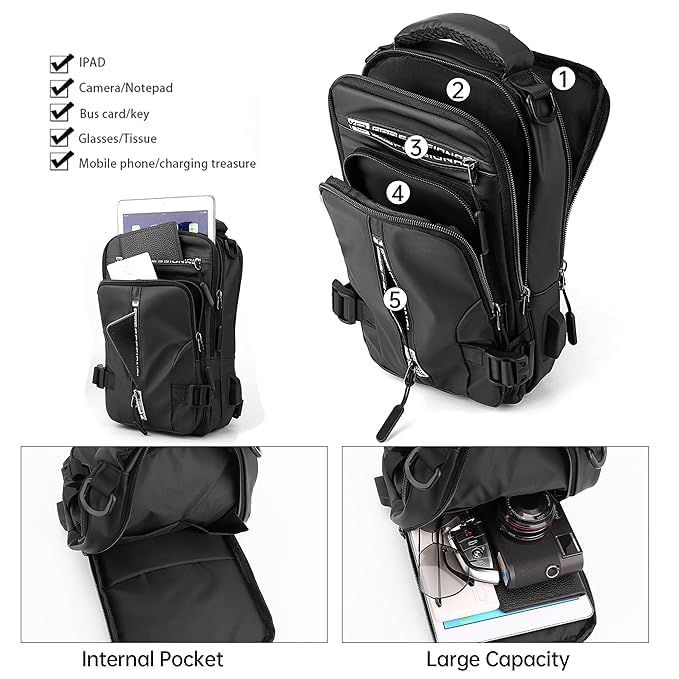 Multifunctional storage area, accessary compartment with functional pockets to keep keys, wallet, mouse, books, papers etc. Can be used as messenger bag ,shoulder bag, crossbody backpack , casual daypack , sling bag , chest bag , for hiking walking biking cycling hunting travel camping beach and everyday using. perfectly works as sling shoulder pack bag, wear this black sling bag over either shoulder comfortably, or across the chest to deter thieves and keep your hands free.
