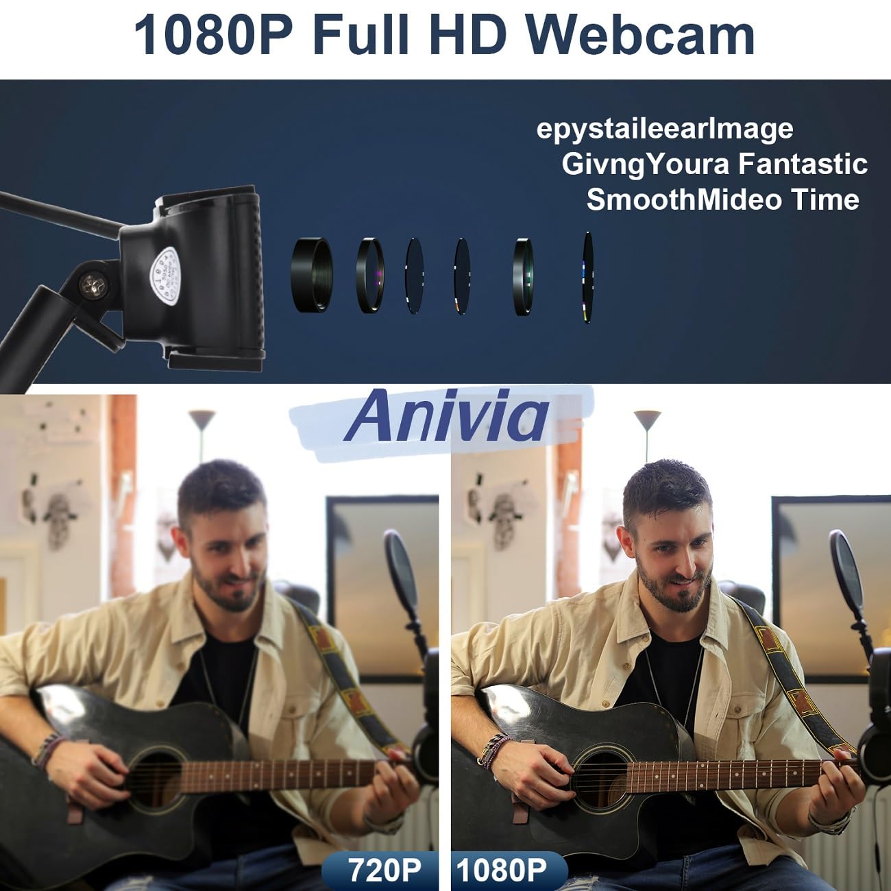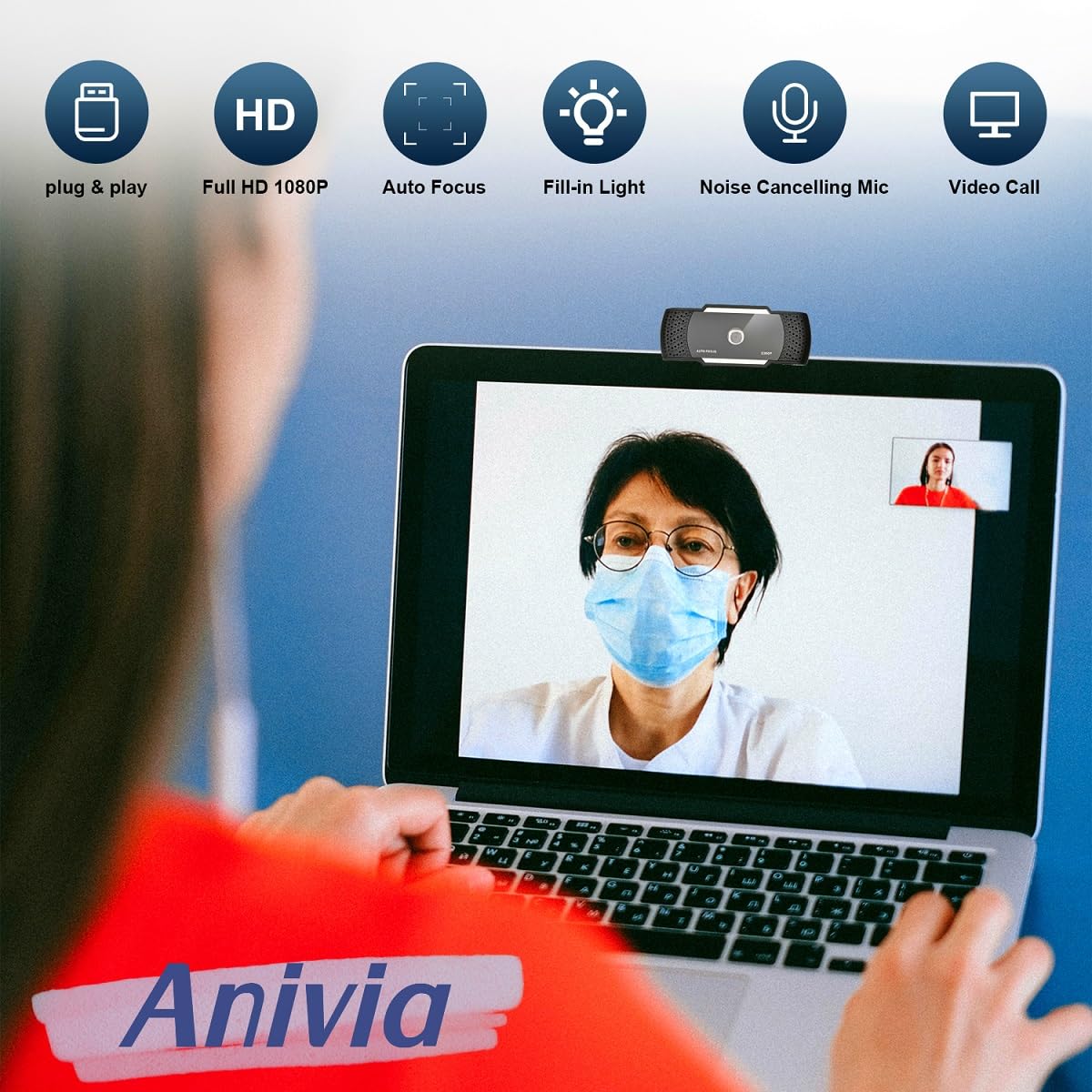 Anivia 1080P Webcam for PC Computer Camera Built-in Noise Canceling Microphones, Low-Light Correction, Works with Microsoft Teams, Zoom, Google Voice, Mac/Laptop/MacBook/Tablet