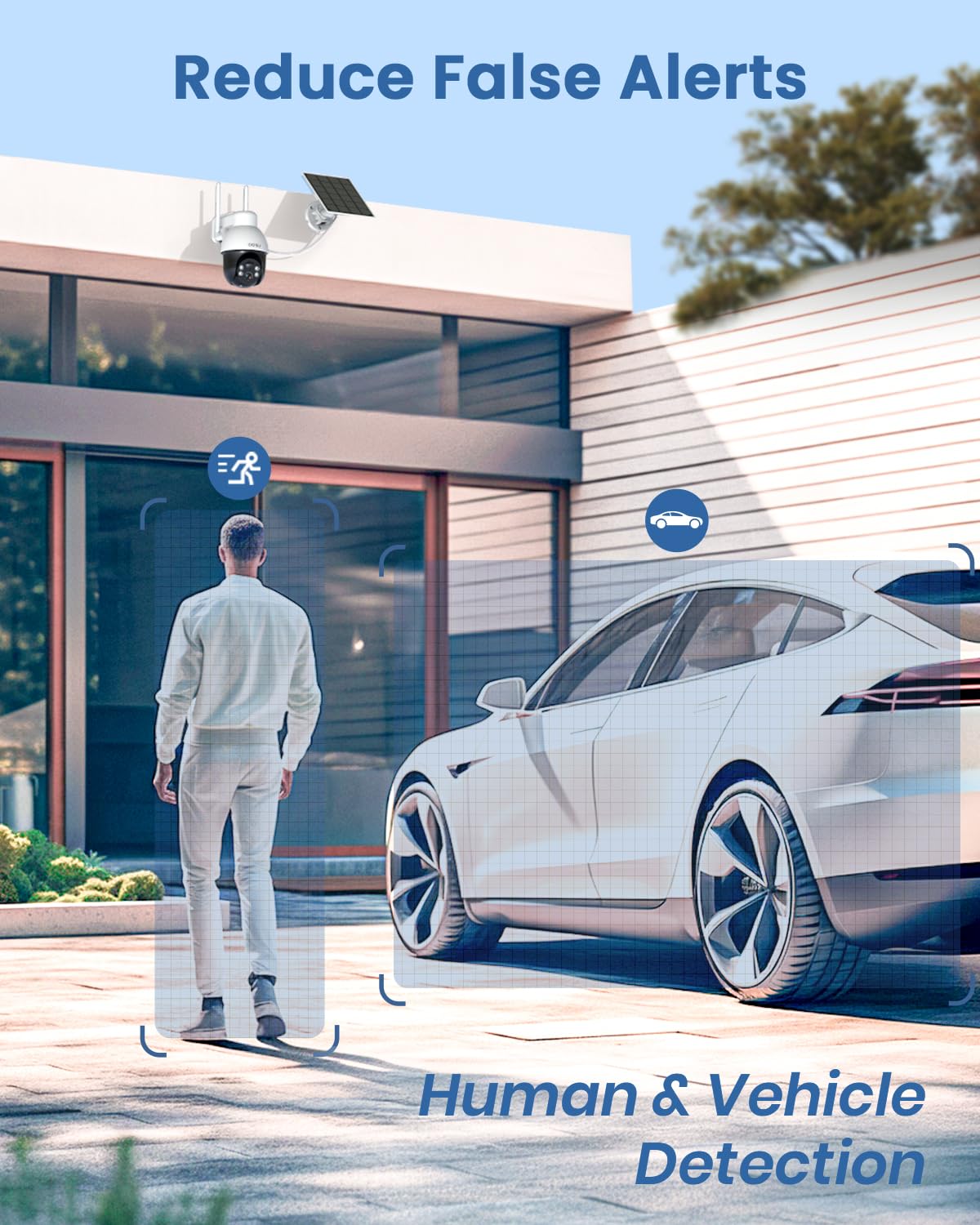 AOSU Solar Security Camera Wireless Outdoor System, 3K/5MP Battery Powered WiFi Camera for Home Security, Panoramic PTZ, Auto Tracking, Human/Vehicle Detection, Night Vision, Spotlights, 2-Way Talk…