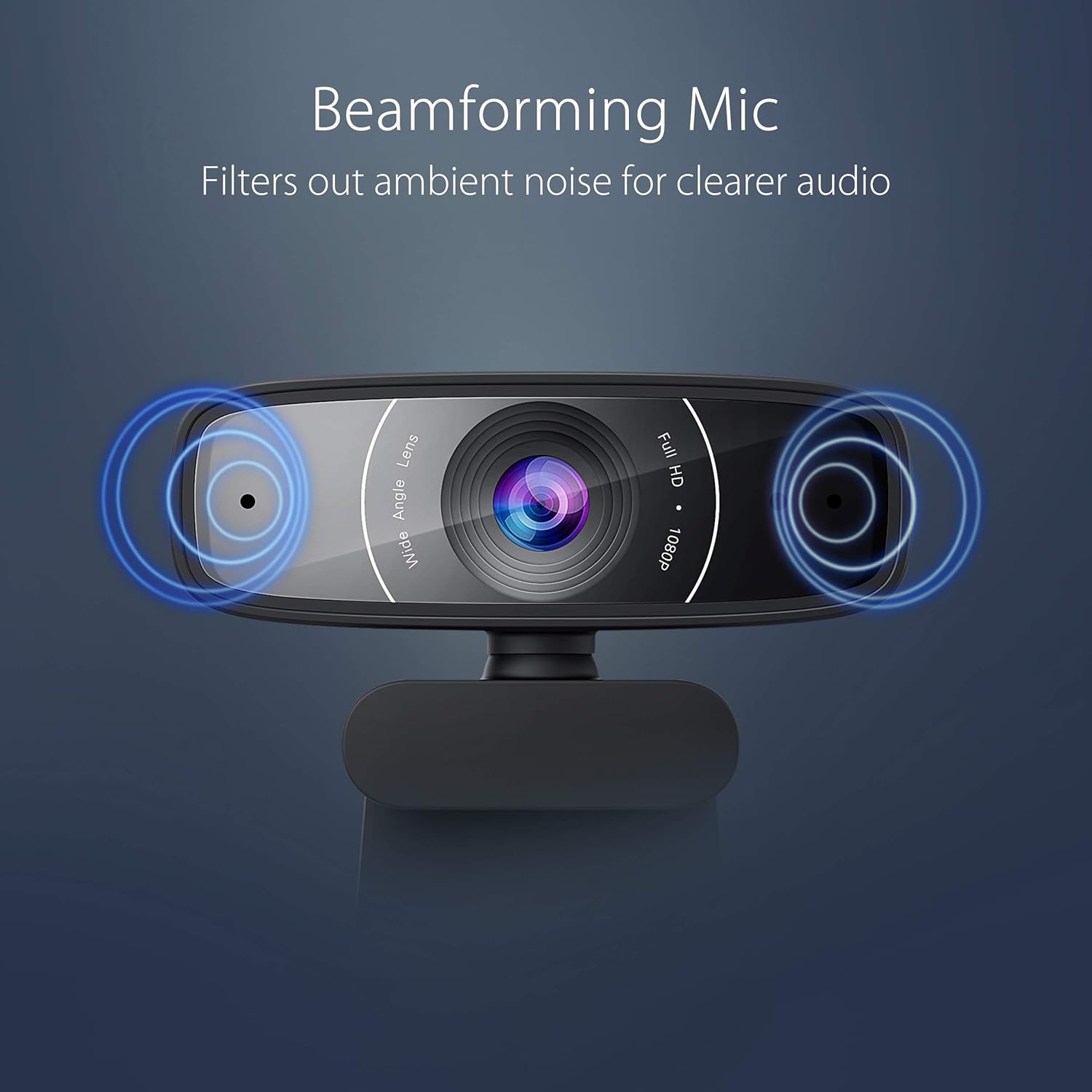 ASUS Webcam C3 1080p HD USB Camera – Beamforming Microphone, Tilt-Adjustable, 360 Degree Rotation, Wide Field of View, Compatible with Skype, Microsoft Teams and Zoom