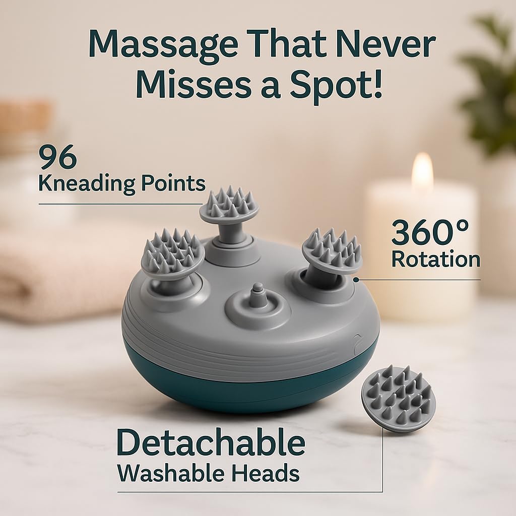 【IPX6 Waterproof】This electric massager can be used not only at ordinary times, but also in the shower, enhance the cleanliness of the shower, help to remove dirt. The four massage heads are removable for easy cleaning, and the soft food-grade silicone head prevents hair pulling and tangling and won’t harm your skin.