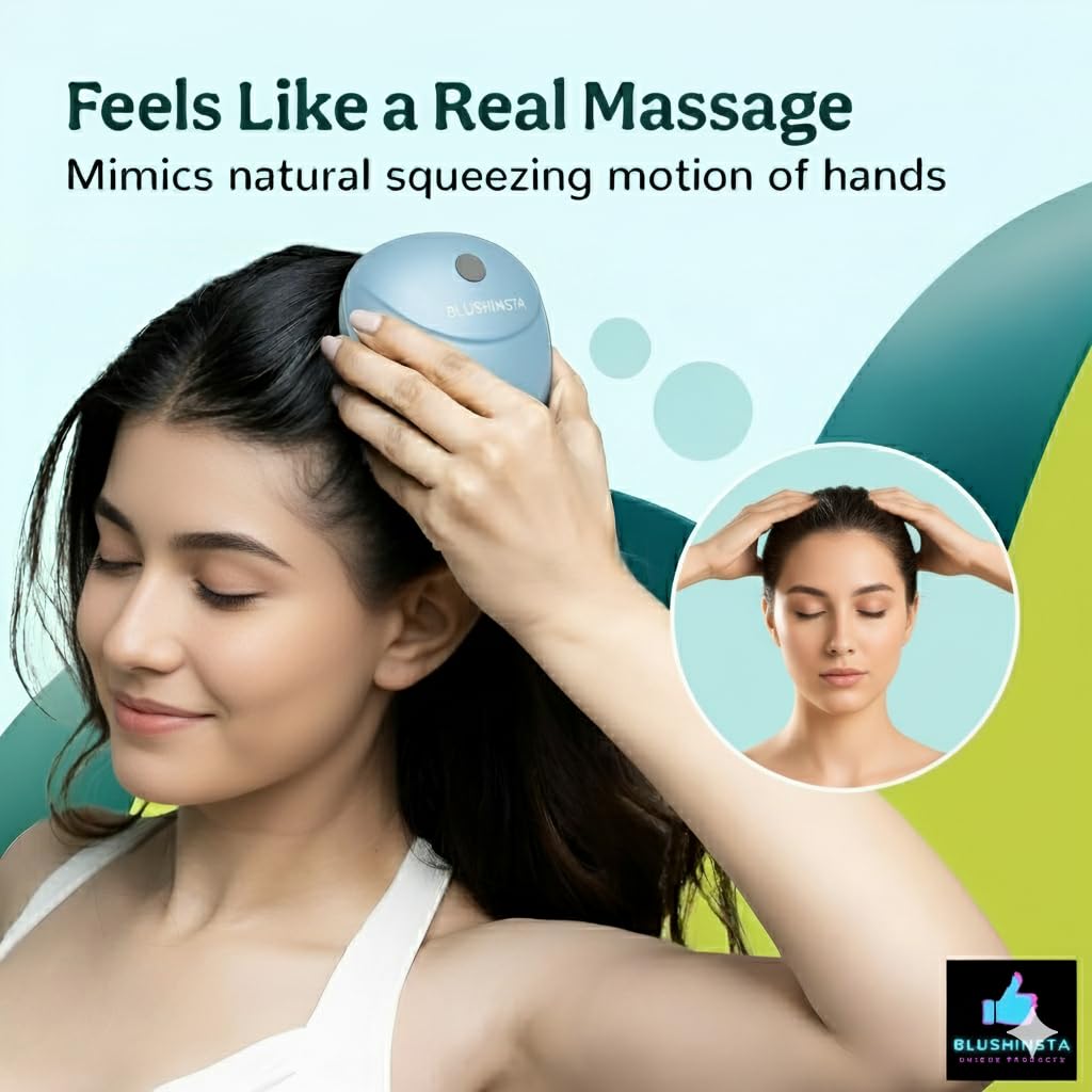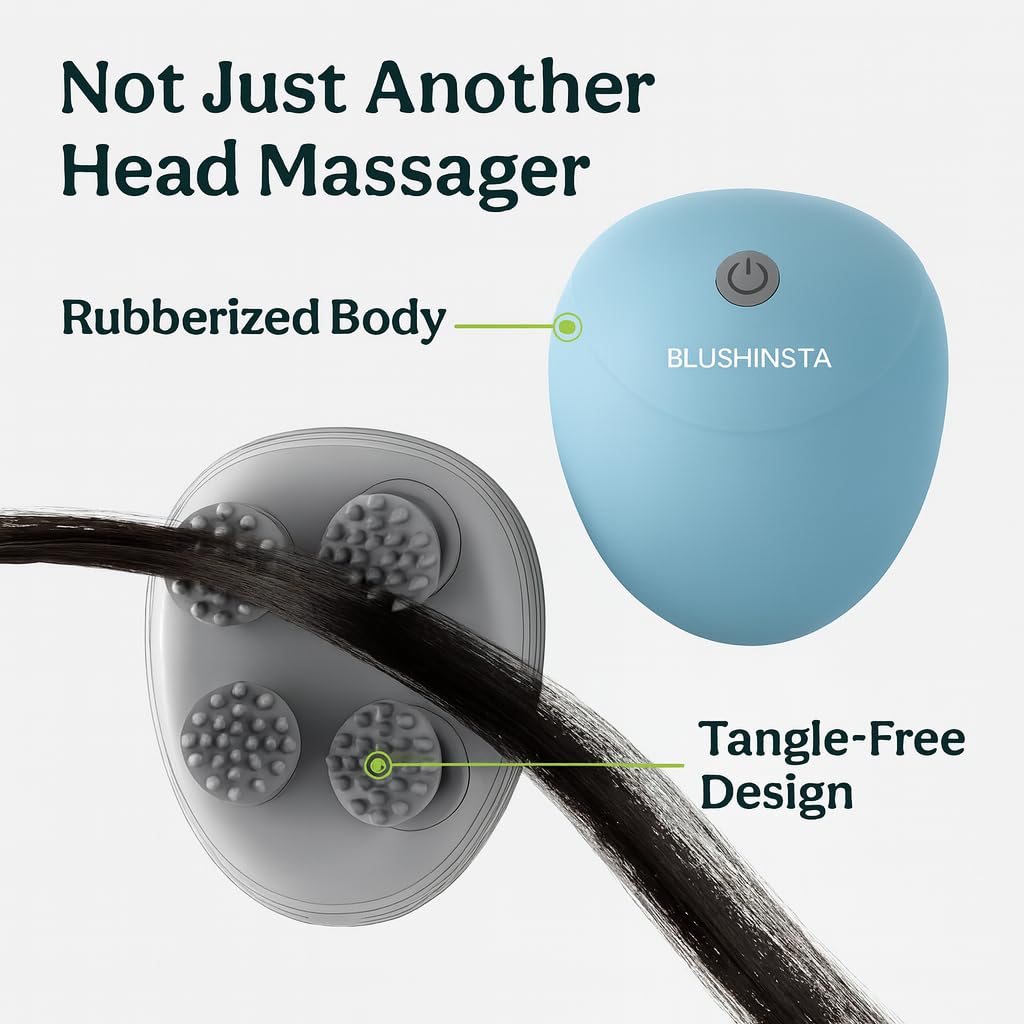 【ERGONOMIC DESIGN】Blushinsta Revive Scalp Massager is ergonomically designed to fit right into your palm while offering easy and Efficient one-handed operation. The rubberized back prevents slippage while the petite, slightly curved body helps you reach the sorest spots of your head or body. It’s the perfect head massager machine!