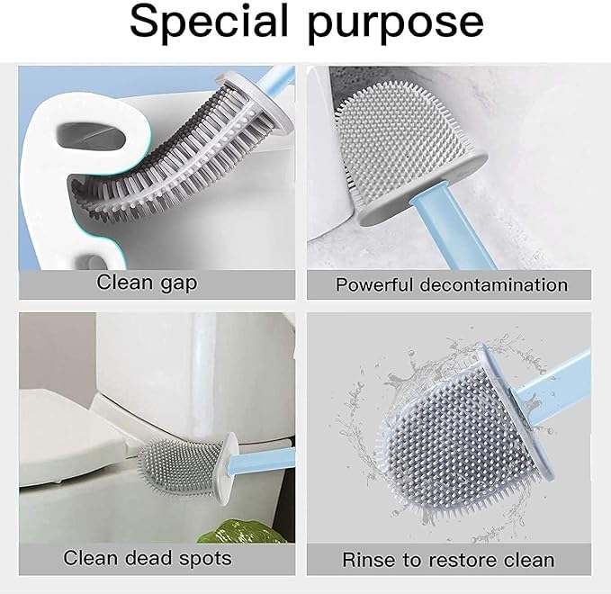 Bendable brush head: The soft brush can be bent easily meaning you can use it on any surface without worries like glass or any soft surface.; Reach hard to reach spots: With soft character and unique shape, our toilet brush can reach hard to reach places in your toilet with ease, giving you a efficient cleaning experience.