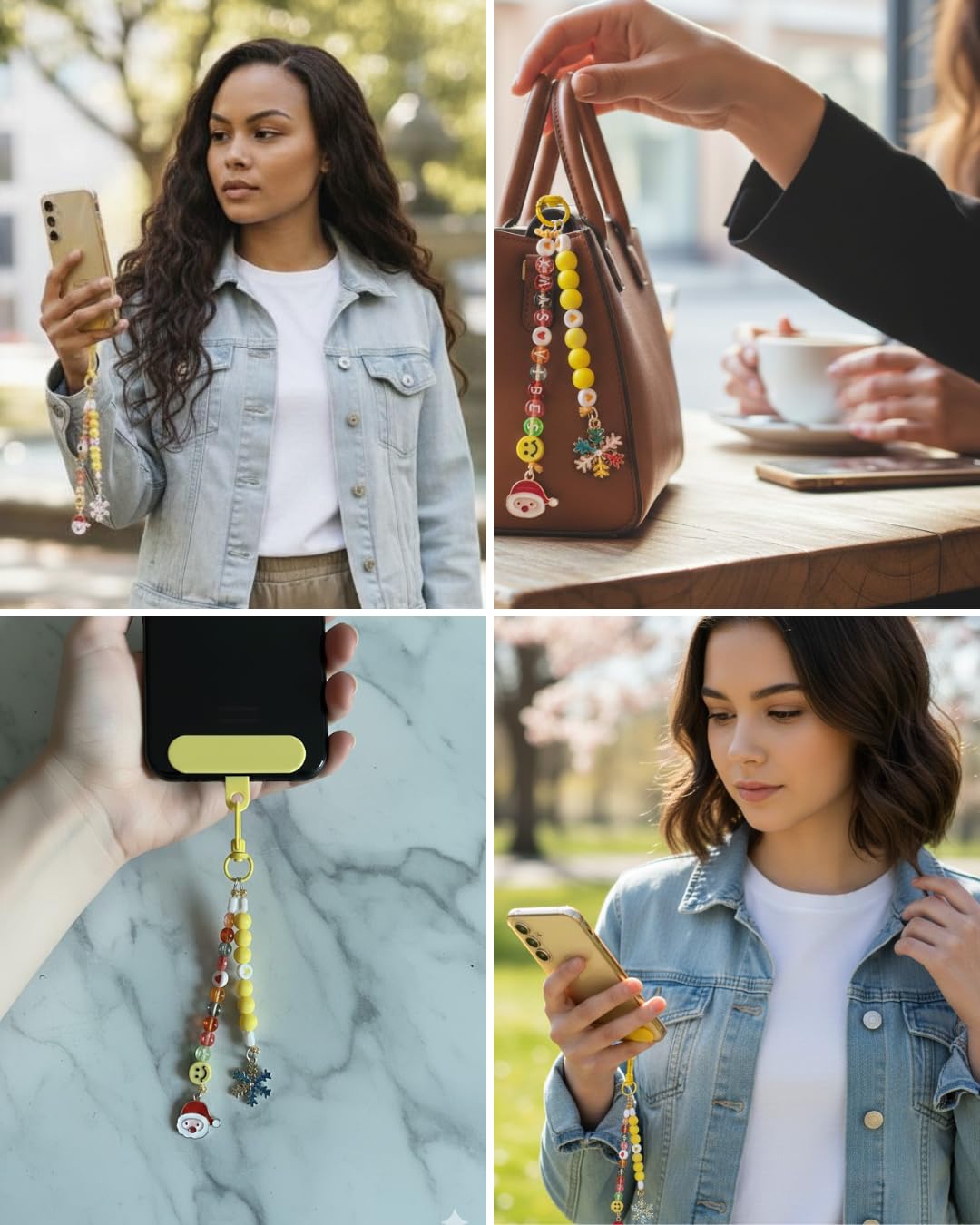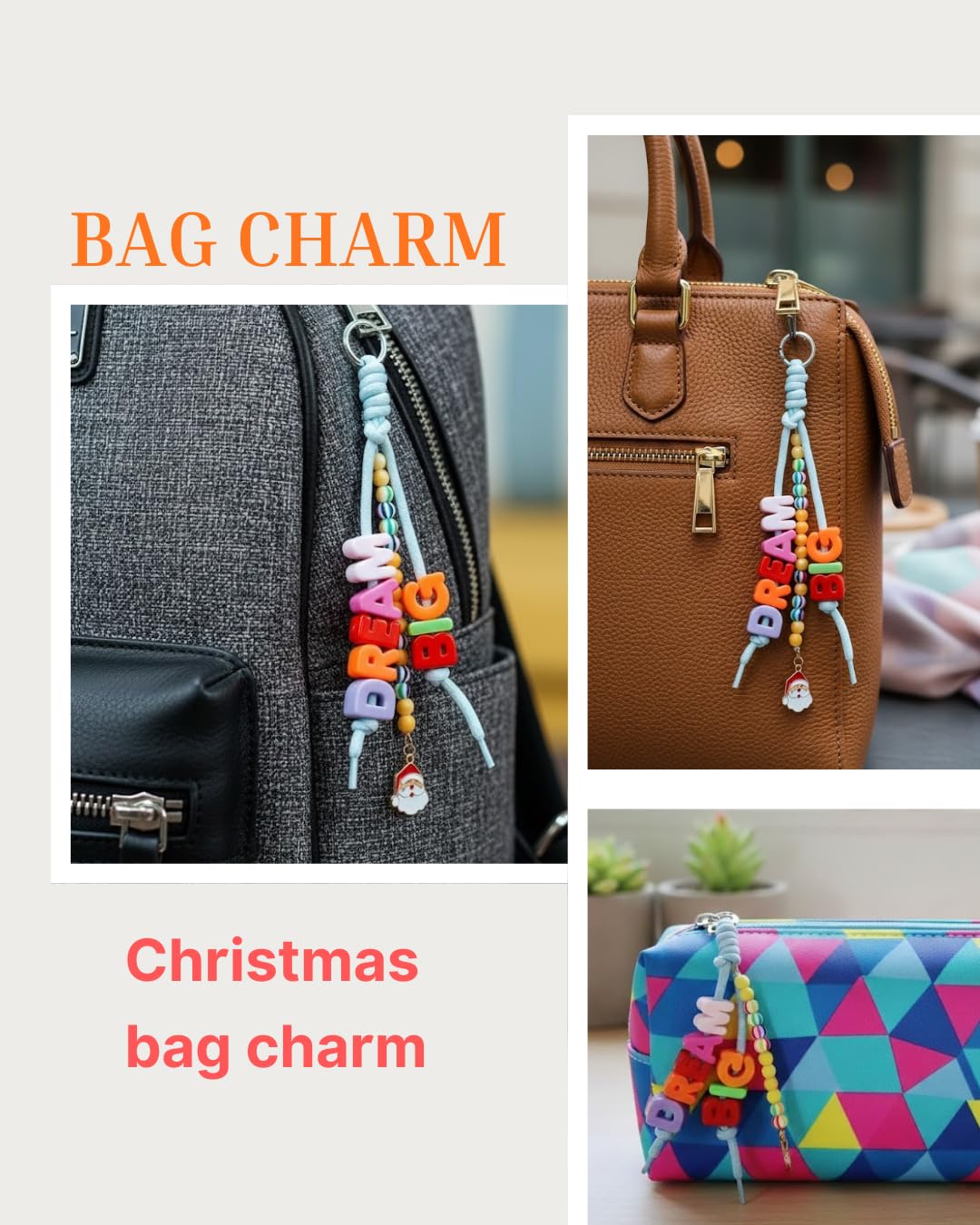 Add personality and meaning to your everyday accessories with this thoughtfully curated Pack of 2 Message Charms. Designed to complement modern lifestyles, this set includes one Merry Xmas mobile cum bag charm for festive moments and one Dream Big bag charm that adds a touch of daily inspiration. The Merry Xmas mobile phone charm keychain features a convertible design that can be easily used as a mobile charm or bag charm, making it perfect for switching styles without changing accessories. The Dream Big charm is crafted as a stylish bag charm, adding a motivational accent to handbags, backpacks, totes, or travel bags. Made with vibrant beads, durable cords, and secure clasps, these charms are lightweight yet sturdy—ideal for regular use. Their versatile, unisex design makes them suitable for women, men, girls, and boys, whether for personal styling or thoughtful gifting. Perfect for festive seasons, casual outings, or everyday motivation, this combo set blends celebration with inspiration—making your accessories stand out effortlessly. Mobile Cum Bag Charm Length: approx. 9–9.5 cm Bag Charm Length: approx. 18 cm Mobile Charm Length :approx :12 cm Material: Beads, cord, metal charm & keyring Use: Mobile cover, handbag, backpack, sling bag, pouch Package Includes: One Merry Xmas mobile cum bag charm and one Dream Big bag charm. This product is handmade and handcrafted, with careful attention to detail. Note : Includes Mobile Charm Strap: Comes with a sturdy mobile charm strap that fits securely into phone cases, allowing easy attachment as a mobile charm or bag charm.