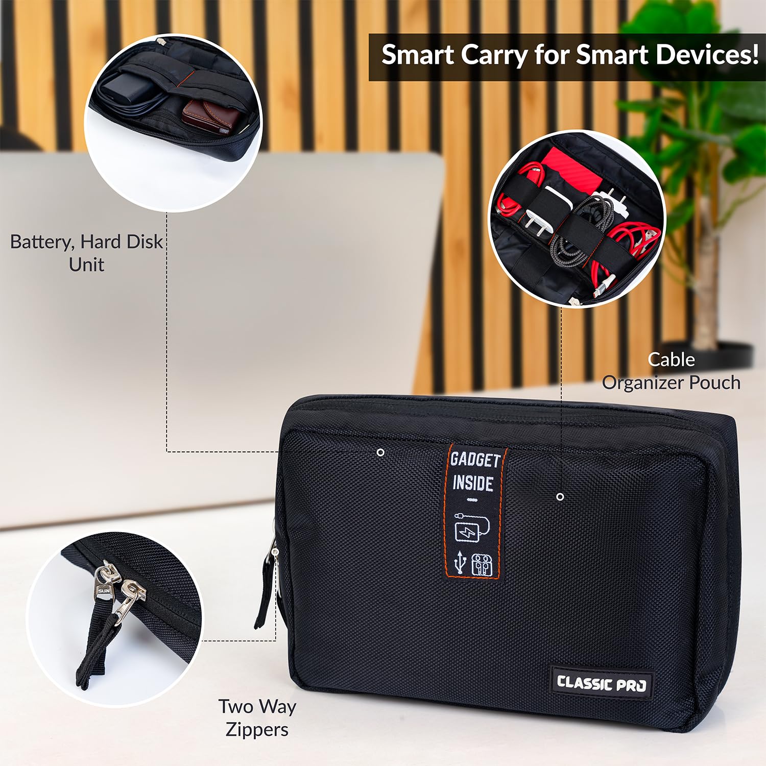 Classic Pro Tech Pouch – Waterproof Organizer for Electronics, Travel Gadgets, Cables, Hard Disks, Power Banks, Chargers and Accessories – Tech Travel Kit Bag for Men & Women