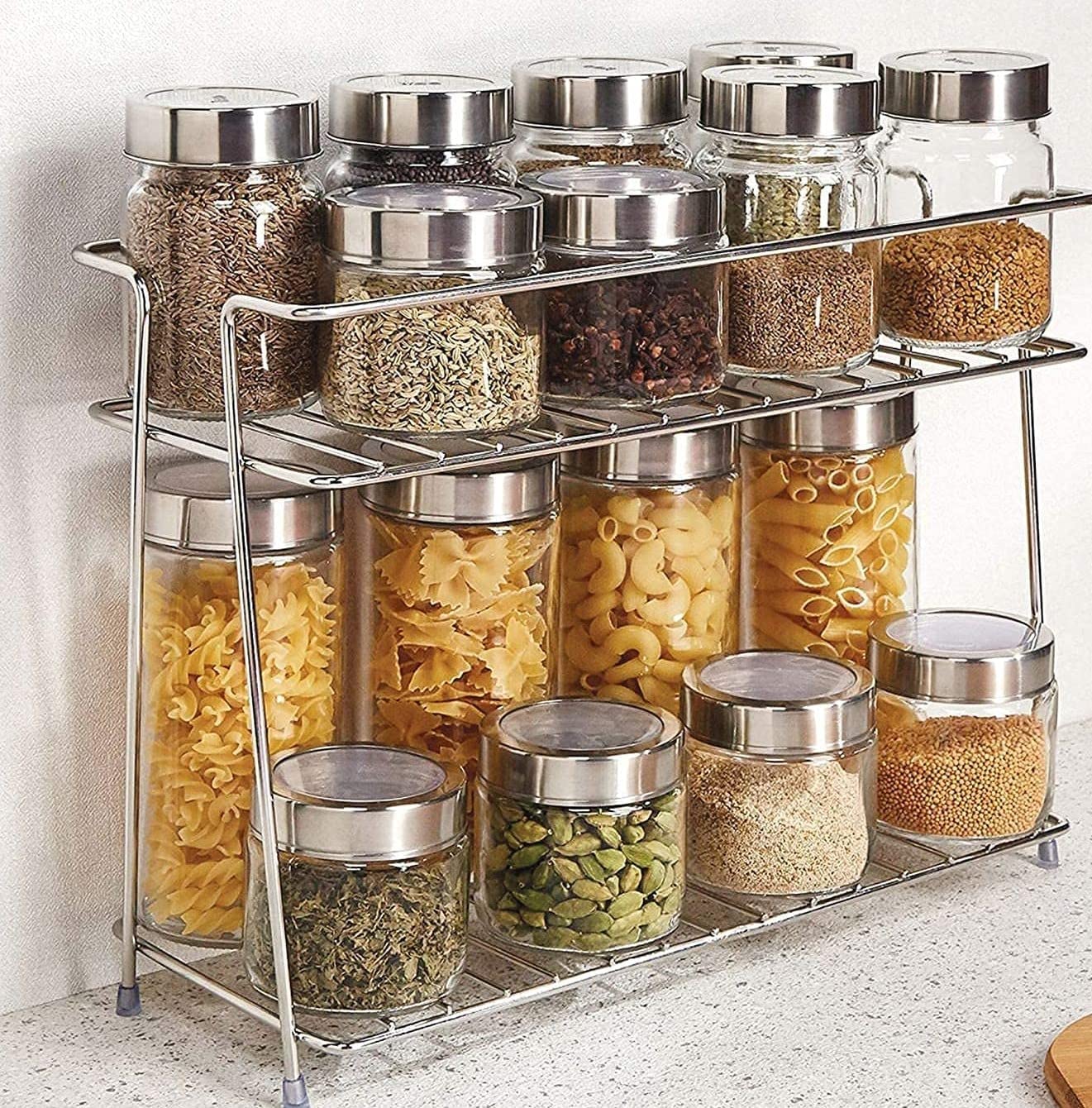 Use anywhere you need to keep food, pantry and kitchen items organized; Perfect for organizing pasta, packets, extra supplies of salt, dressing and vinegar, macaroni and cheese boxes, baking supplies, condiments and more; These racks also work in any room of your home! It can also be used in bathroom to organise things there.