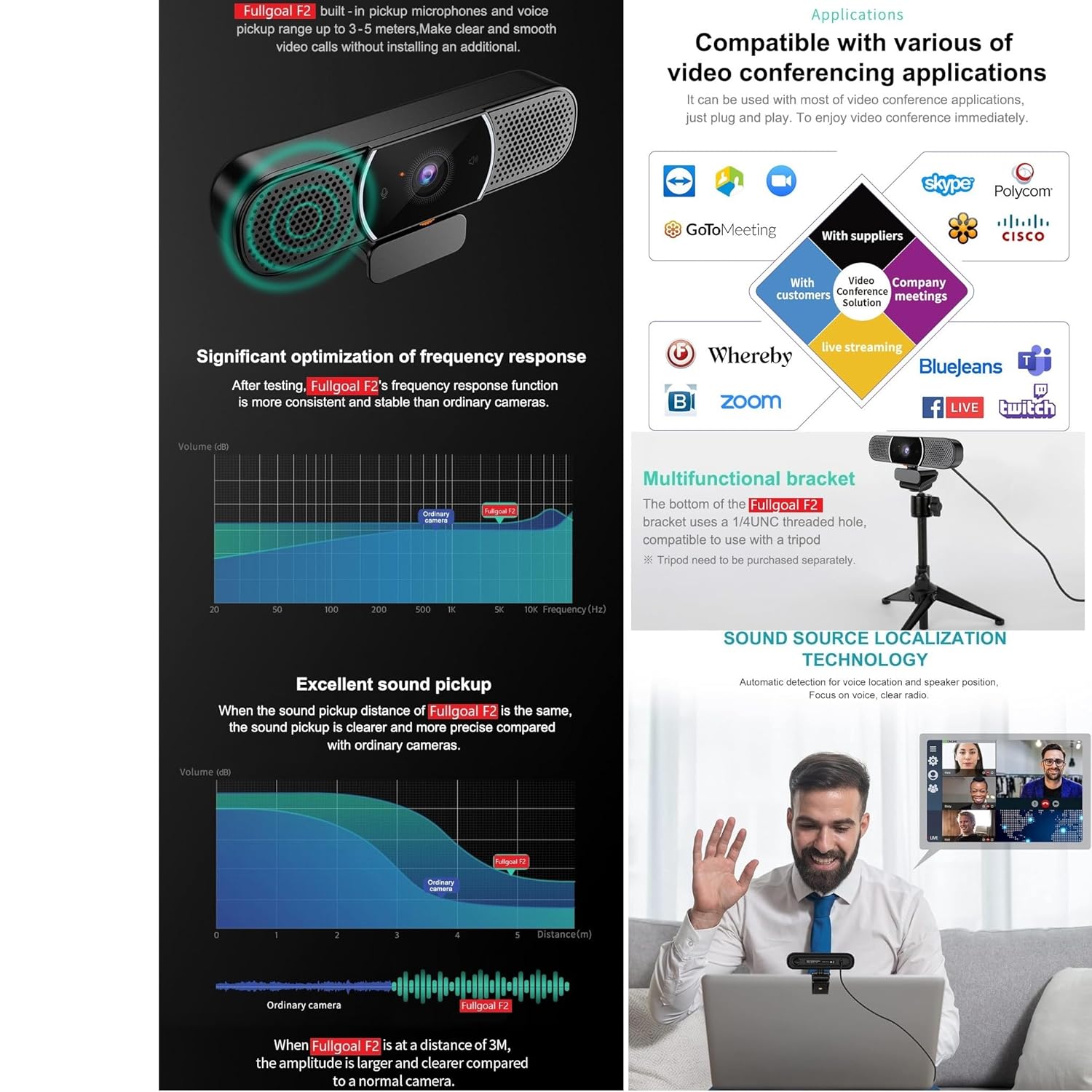 suitable for any lights. Smart Low-light Correction Fullgoal F2 webcam has makes u look great in any lighting condition. No need to worry about attending formal meetings when u are not in our workplace.