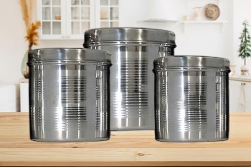 DAINTREE Stainless Steel Storage Box Drum with Lid Cereal Spices Pulses Container Spice Jar Canister Steel Dabba Keeper for Kitchen Food Items (3 containers)((1250ml, 1000ml, 800ml)), Silver