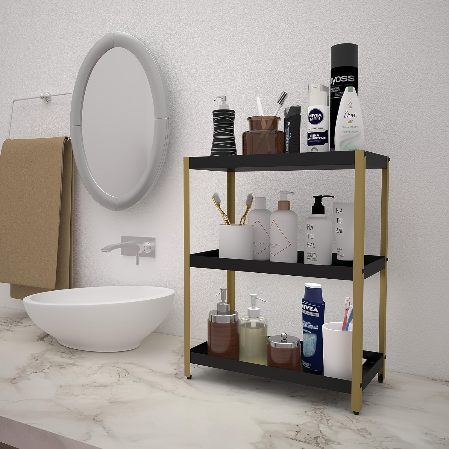Customers find the storage rack to be of good quality, sturdy, and easy to assemble, with one noting it holds good weight for its size. They appreciate its appearance, with one highlighting the stunning black and gold color combination, and consider it worth the price. The rack is particularly useful in kitchens, with one mentioning it’s perfect for limited counter space, and customers like its size and storage capacity, with one noting it can accommodate many items.