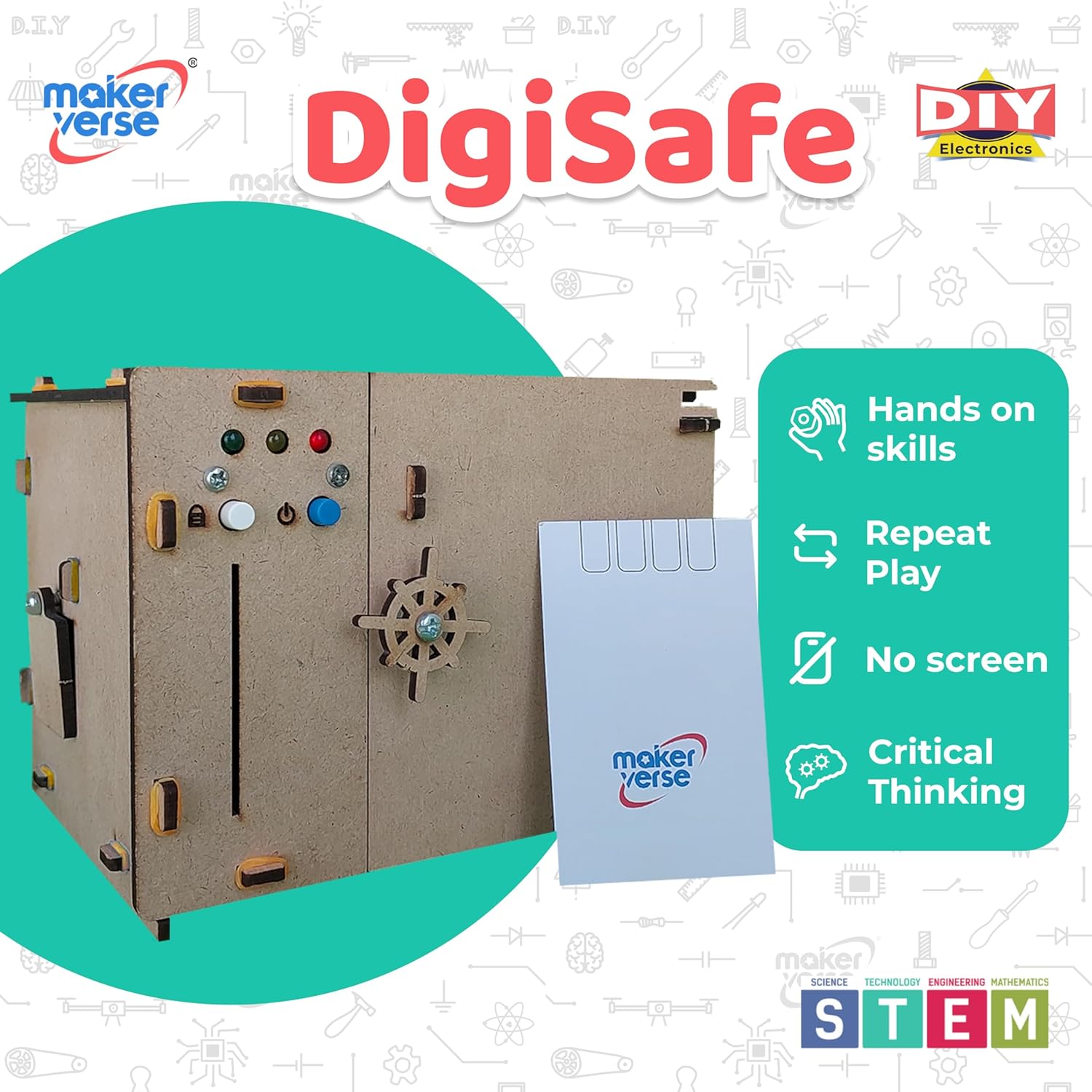 EDUCATIONAL: Child learns about concepts of science such as electronics, DC motors, infrared sensors, and binary numbers through hands-on experience with a digital safe project. Building the DigiSafe touches upon all the STEM disciplines.