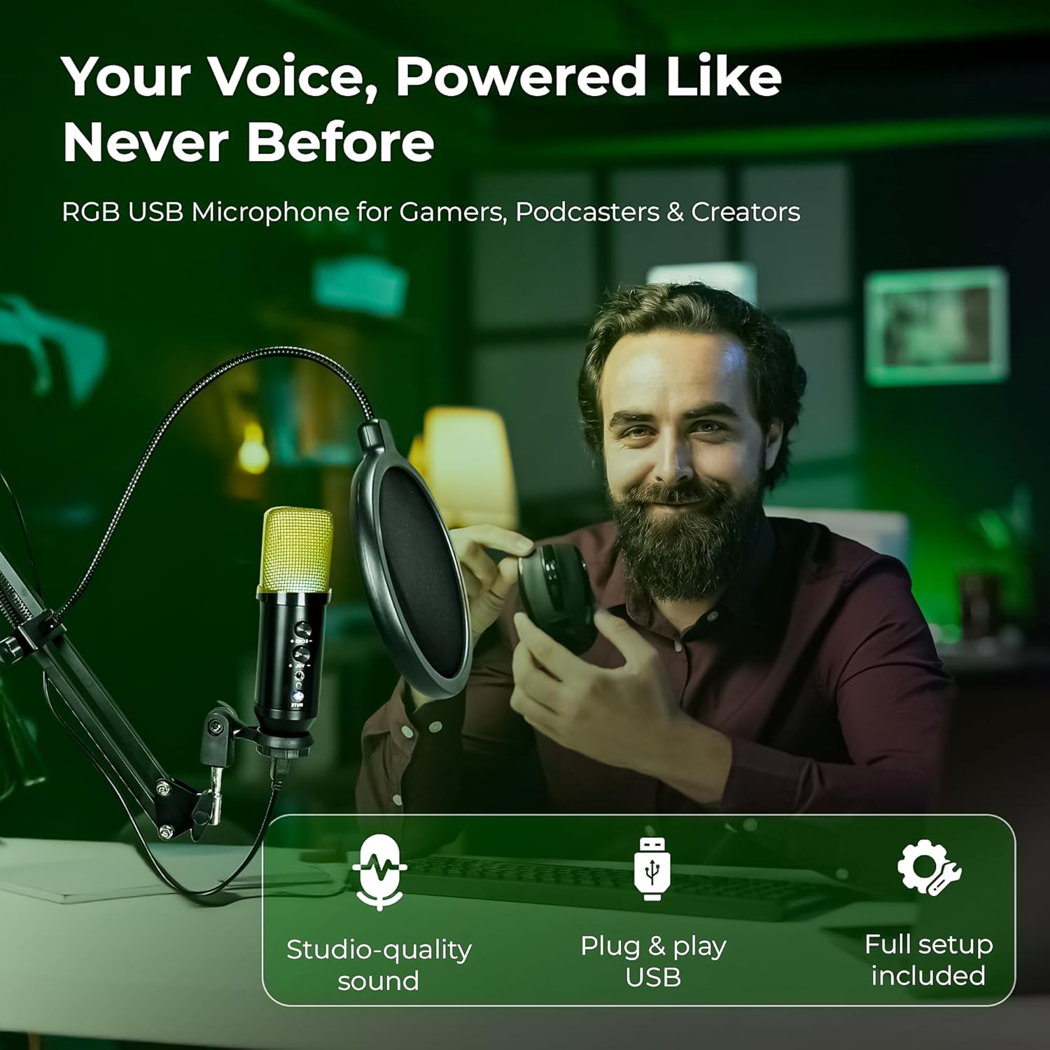 Perfect for Creators & Professionals – Ideal for YouTubers, streamers, gamers, singers, teachers, and remote workers looking for studio-quality sound at home.