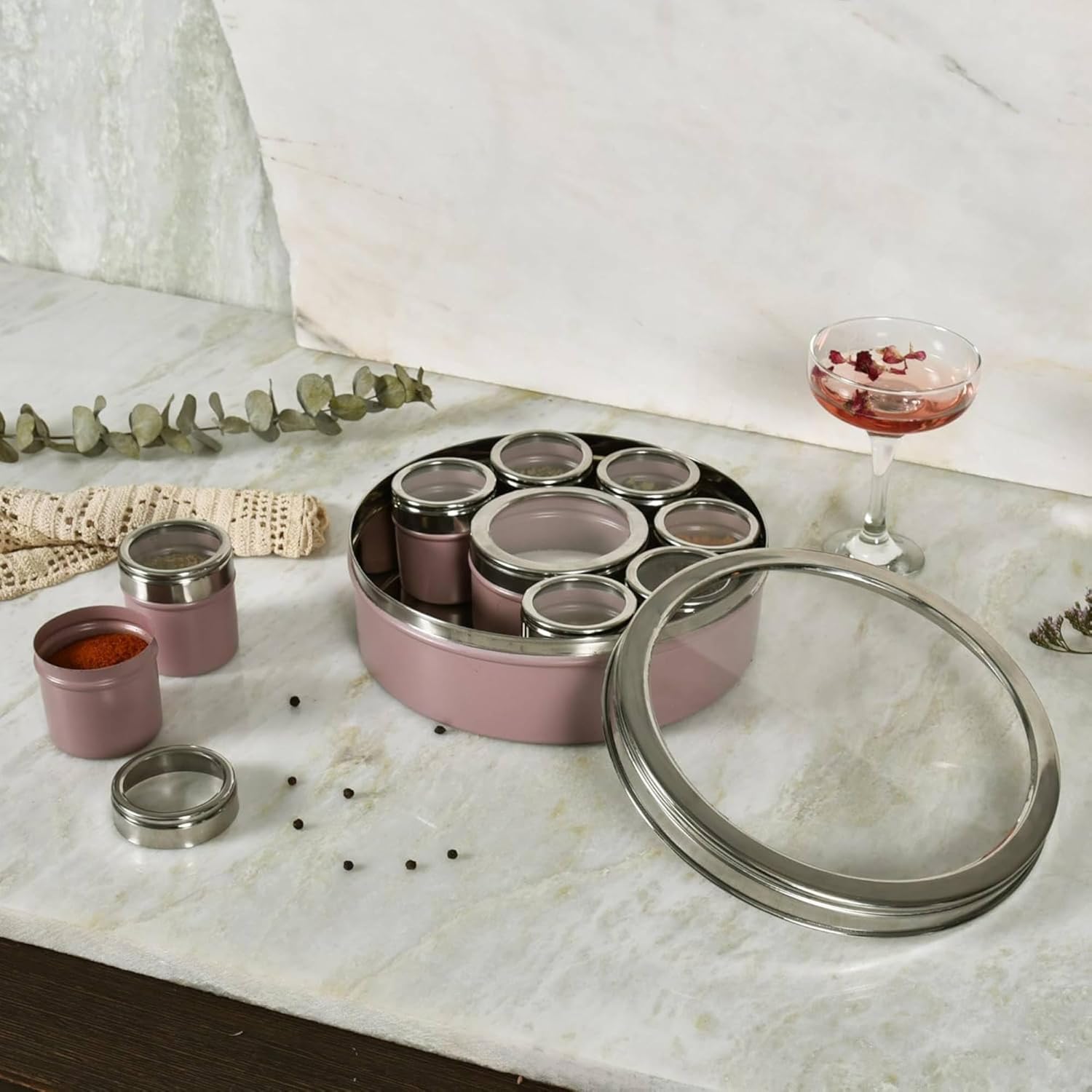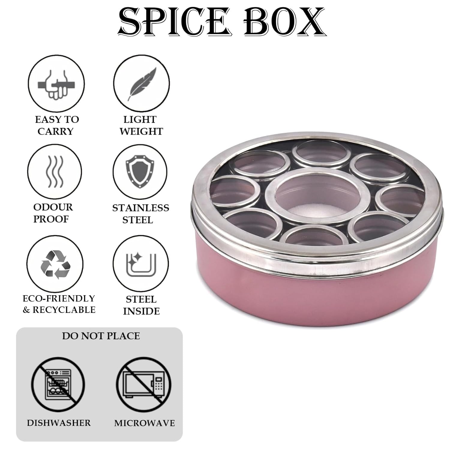 Durable and Safe Material: Made from 100% food-safe, powder-coated stainless steel, this masala box ensures the longevity of your spices and herbs while keeping them fresh and hygienic. It’s resistant to rust and stains, providing long-lasting use in your kitchen.