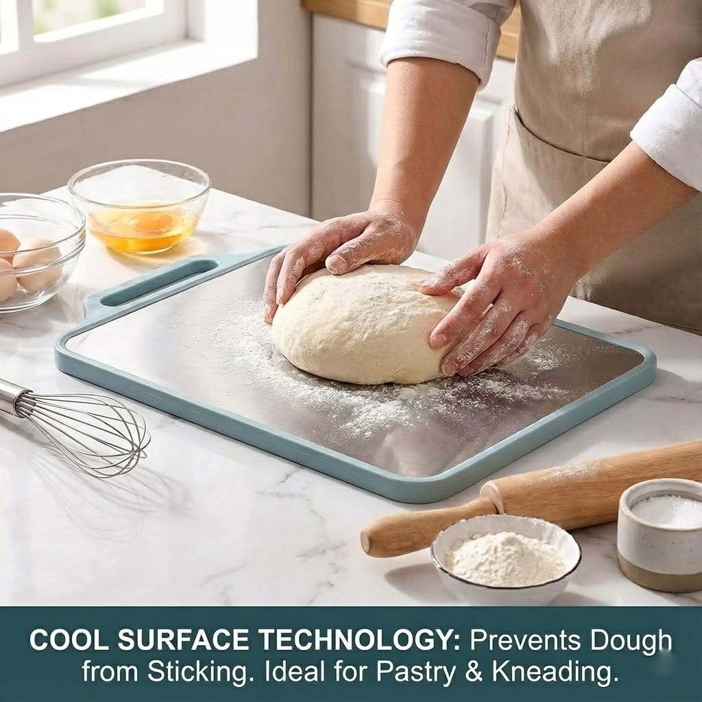 Heavy-Duty & Durable Build : Crafted with premium stainless steel, this board withstands tough chopping, slicing, and pounding without warping or breaking.