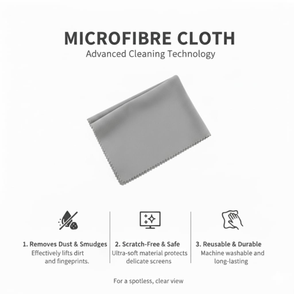 Includes Premium Microfibre Cloth – gentle on screens, removes dust, fingerprints & smudges.