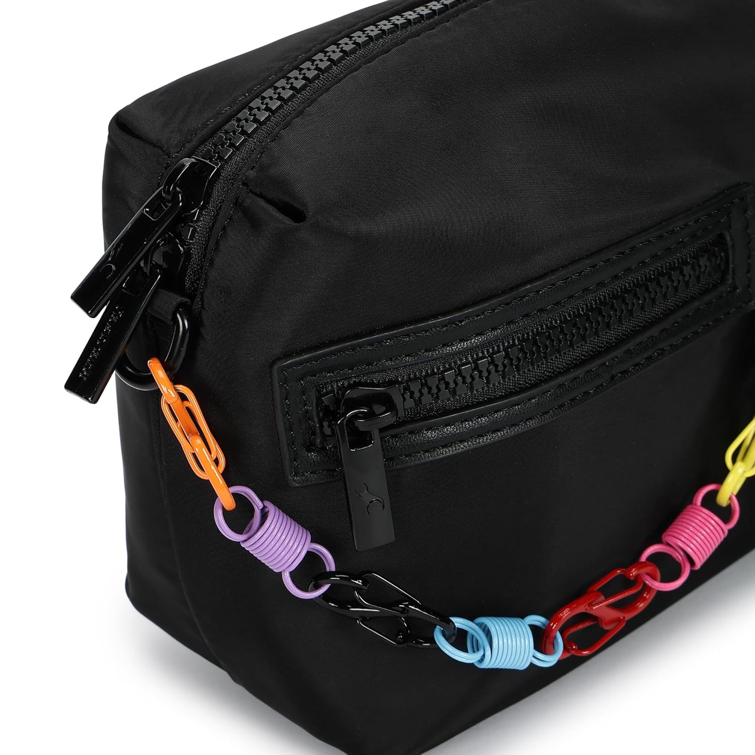 Fastrack Statement Chain Sling Bag for Women | Black Nylon Crossbody with Zipper Closure, Front Utility Pockets and Adjustable Strap | Lightweight Urban Sling for College & Travel