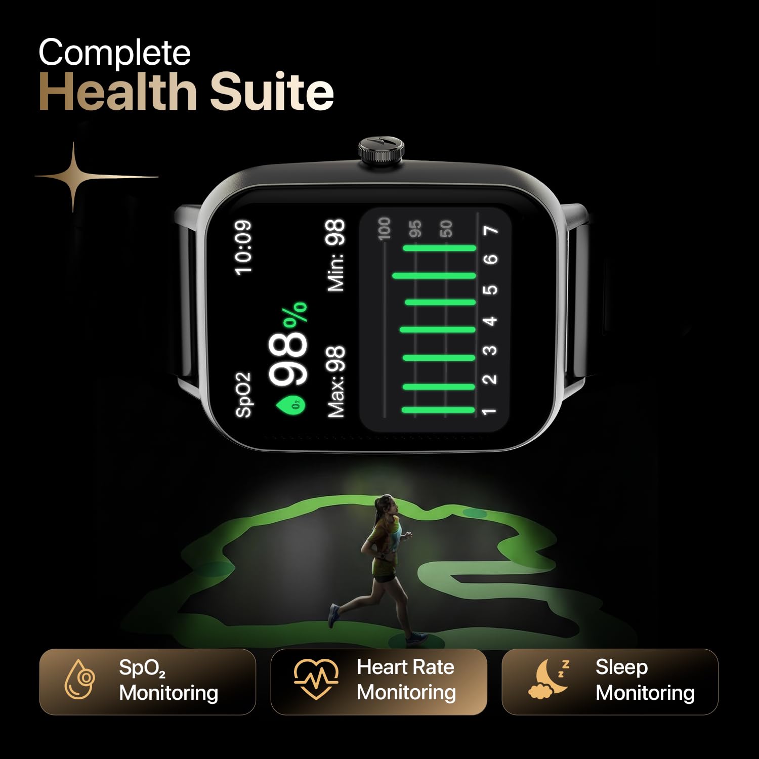 Complete Health Suite | SpO2, Heart Rate & Advanced Sensors – Monitor your wellness with the Complete Health Suite, including SpO2 blood oxygen tracking, continuous heart rate monitoring, and advanced sensors designed to support your daily fitness and health goals.