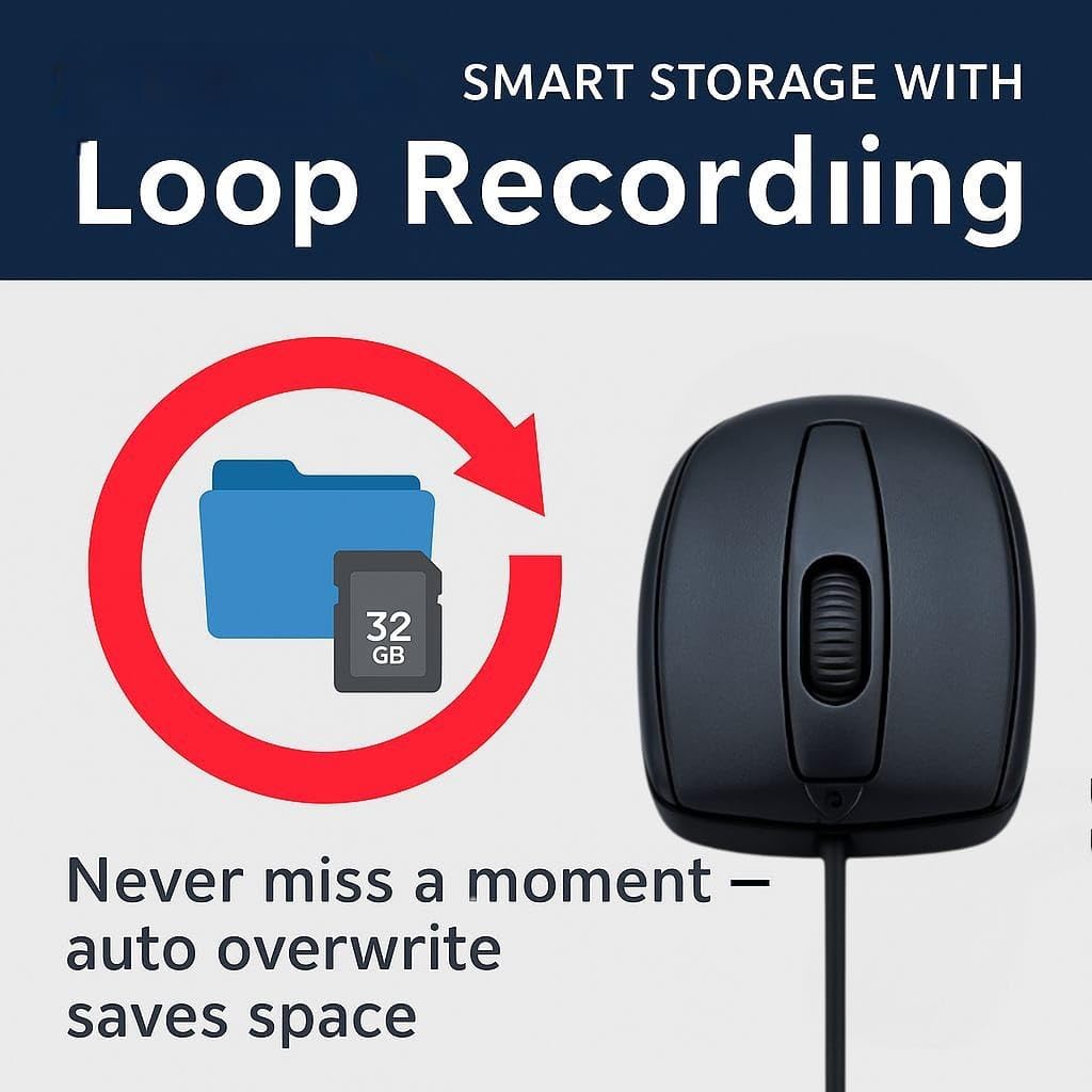 🔁 Automatic Loop Recording – Ensures non-stop recording by replacing old footage with new clips once storage is full — ideal for continuous operation.
