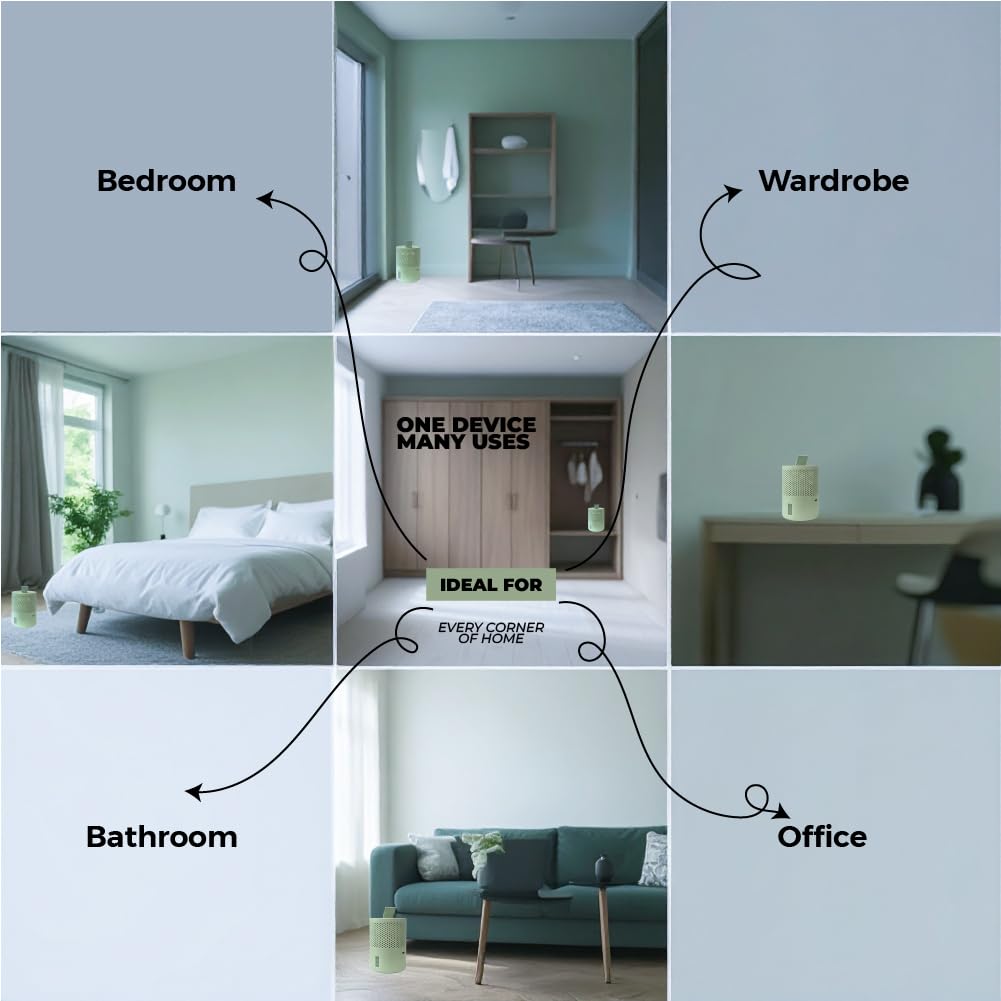 Wardrobes & Closets: Prevent musty odors, keep clothes dry.Bathrooms: Stop damp smells, reduce fog and water stains.Kitchens: Protect dry goods and prevent condensation.Cars & Storerooms: Maintain a clean, dry environment. Dual Benefit: Moisture & Odor Removal