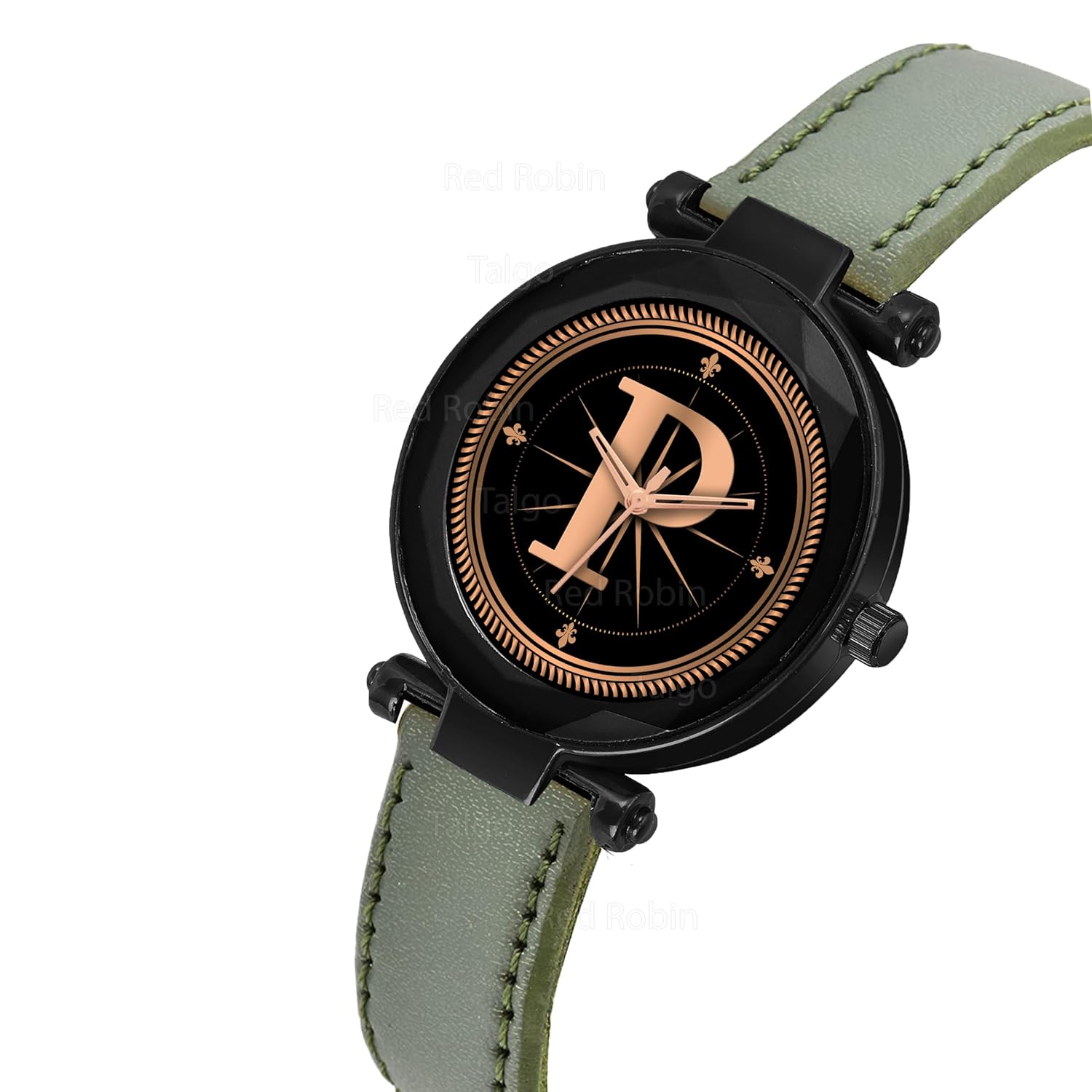 Gadgets World Analog Round Black Dial Alphabet P Design Black Case Stylish Strap Classic Design Fancy Wrist Watch for Women and Girls, Pack of 1 – Alpha-P-GEN-BK