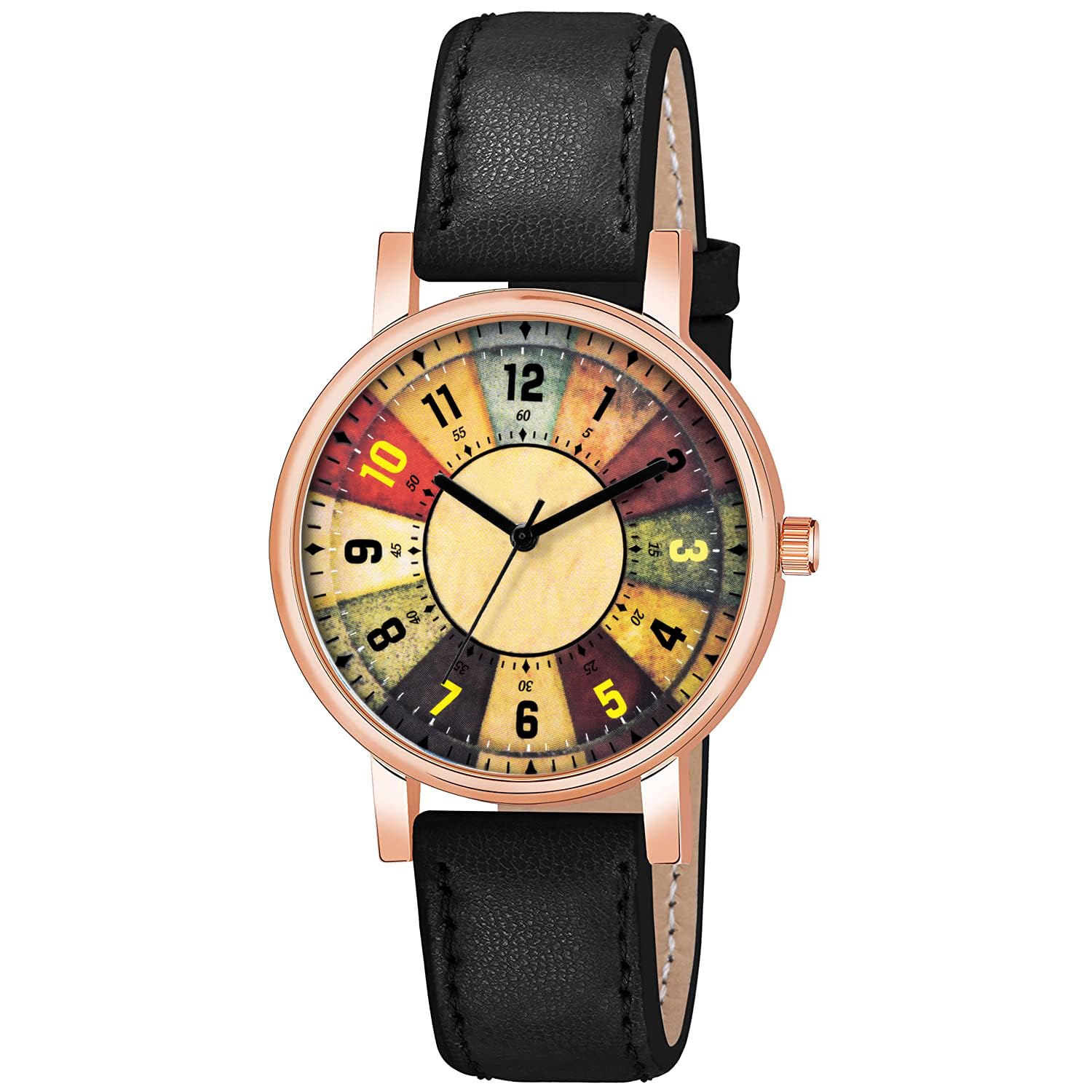 Gadgets World Analog Round Yellow Dial Stylish Black Strap Creative Fashion Wrist Watch for Women and Girls, Pack of 1 – C36-VINTAGE-BLK-L