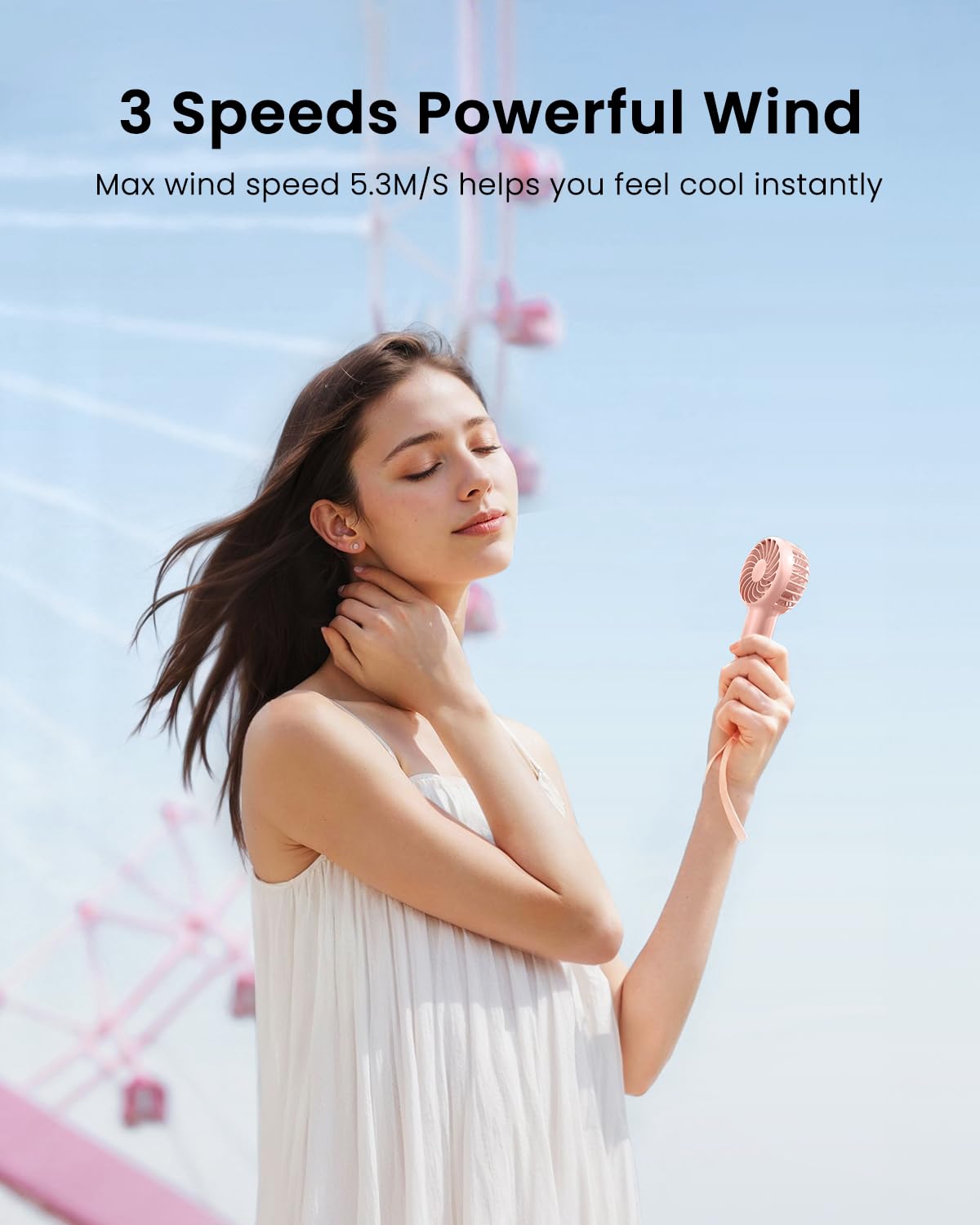 【Portable Mini Fan】 With its compact design, this handheld fan is a must-have travelling tool. Its size is 140*63*38 mm and weighs only 0.2lb, easy to hold in your palm and fit into your pocket, bag or luggage, perfect for travelling or outdoor activities. The attached wrist strap design makes you more easy and comfortable to use.