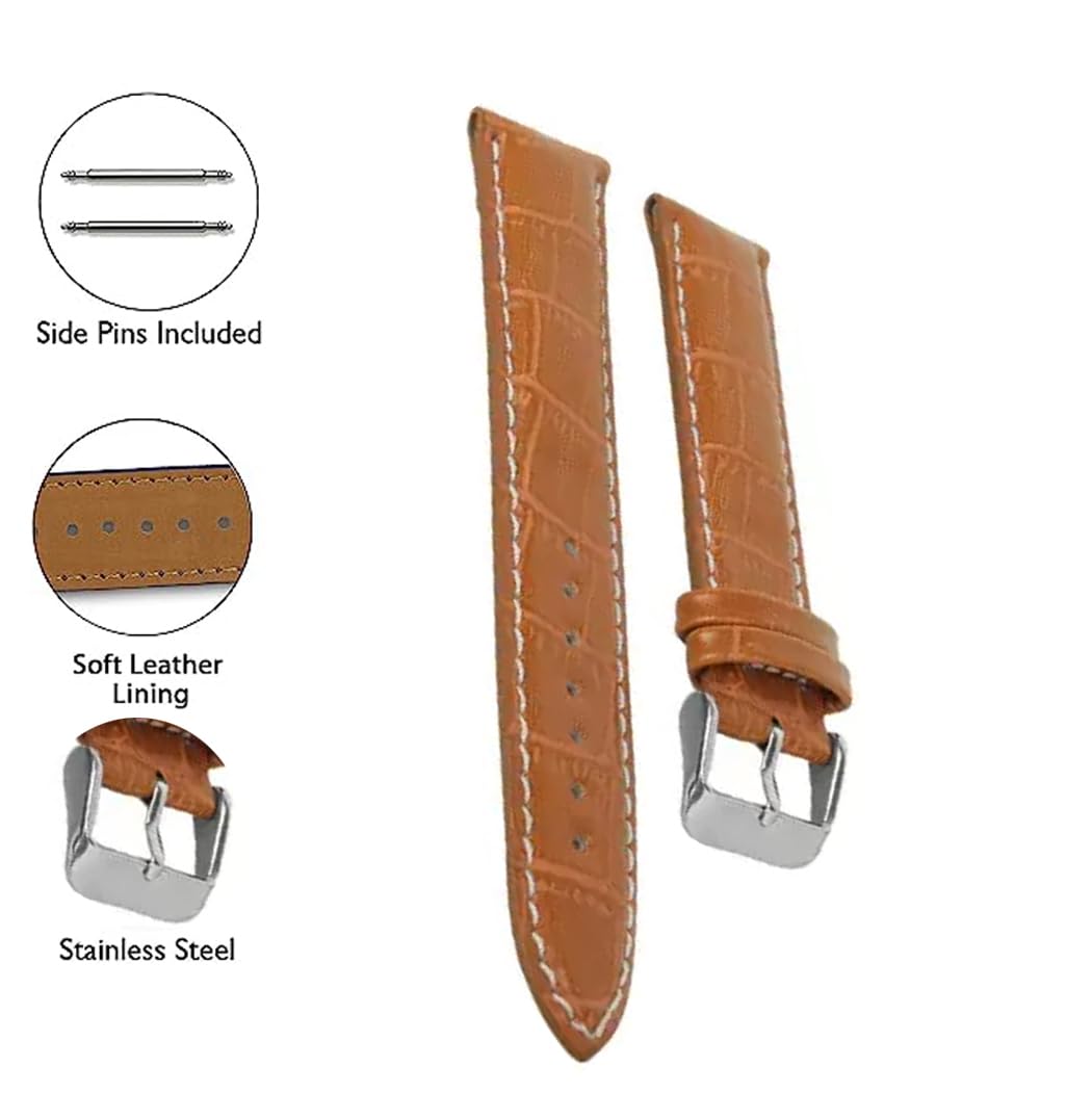 Black 22mm Blue 22mm Brown22 mm Genuine leather Strap For Watch and Smart Watch for All 22mm Combo of 3