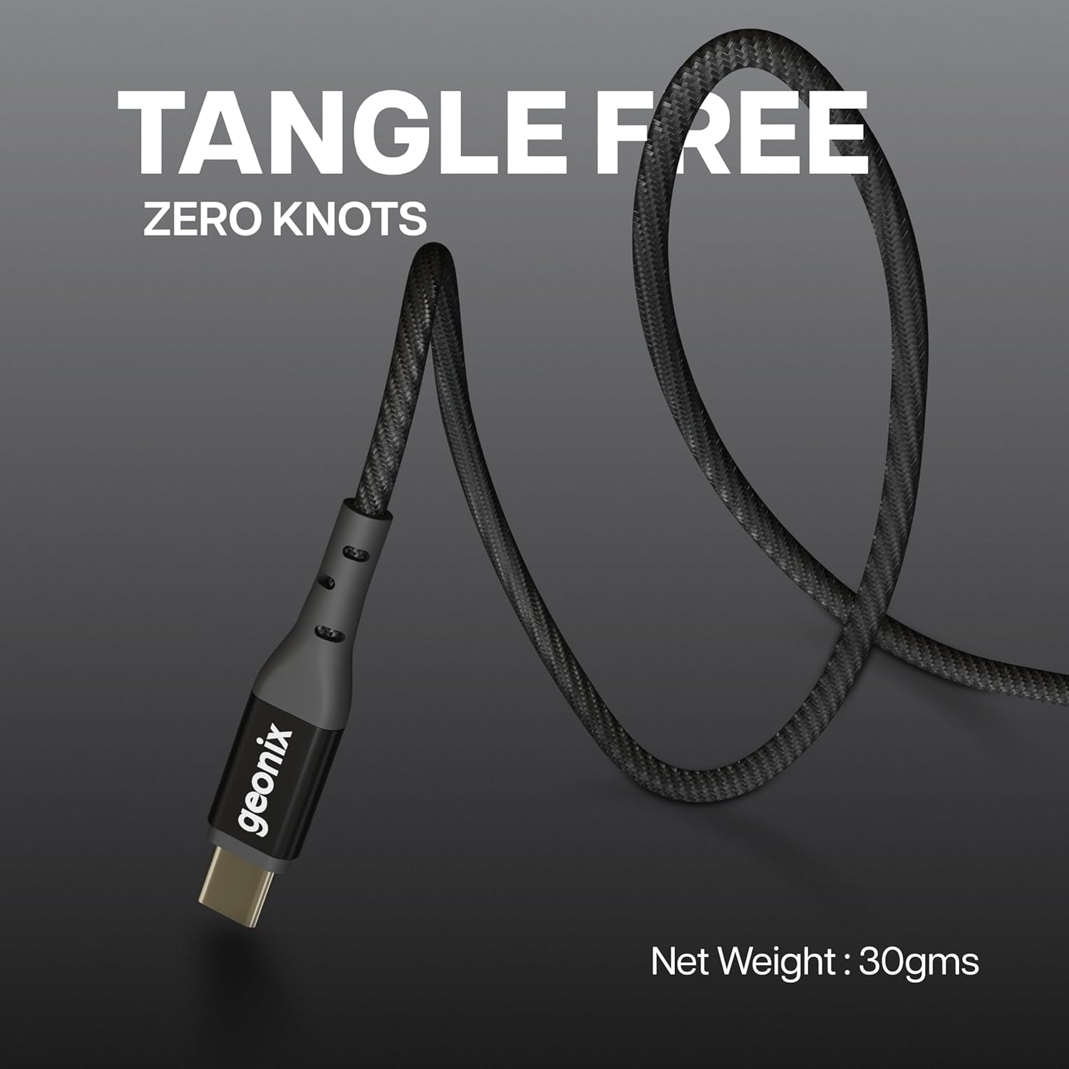 Geonix eForce C03 3A Type-C Fast Charging Cable, 1.2m Braided USB-C Data & Charging for Android Smartphones, Tablets, Laptops – Quick Charge & High-Speed Sync (Black)