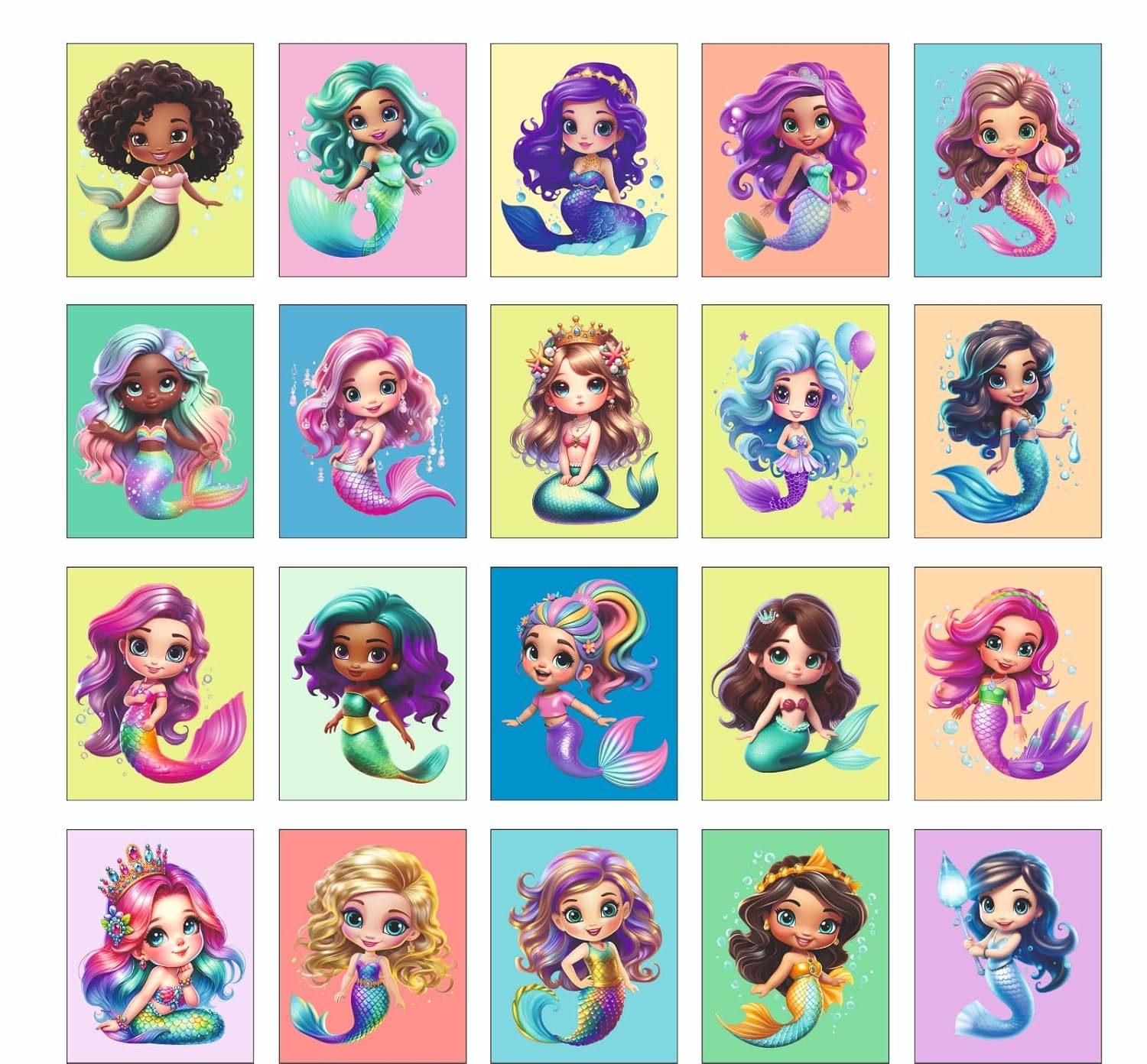 Gifts- Cute Mermaid Fridge Magnets Set of 20 | Rectangular Character Magnets | Decorative Kitchen, Whiteboard, Locker Accessories | Strong Magnetic for Kids & Home Dcor (4×5 cm)
