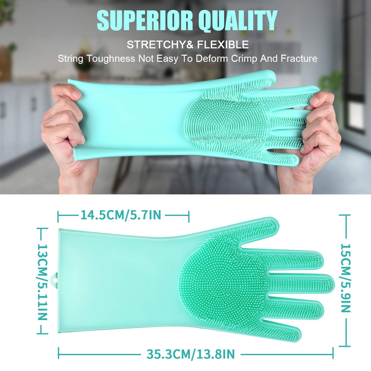 Reusable Silicone Brush Scrubber Gloves The pair of silicon gloves are designed to fit comfortably in your hands and can be used for the toughest household cleaning tasks.