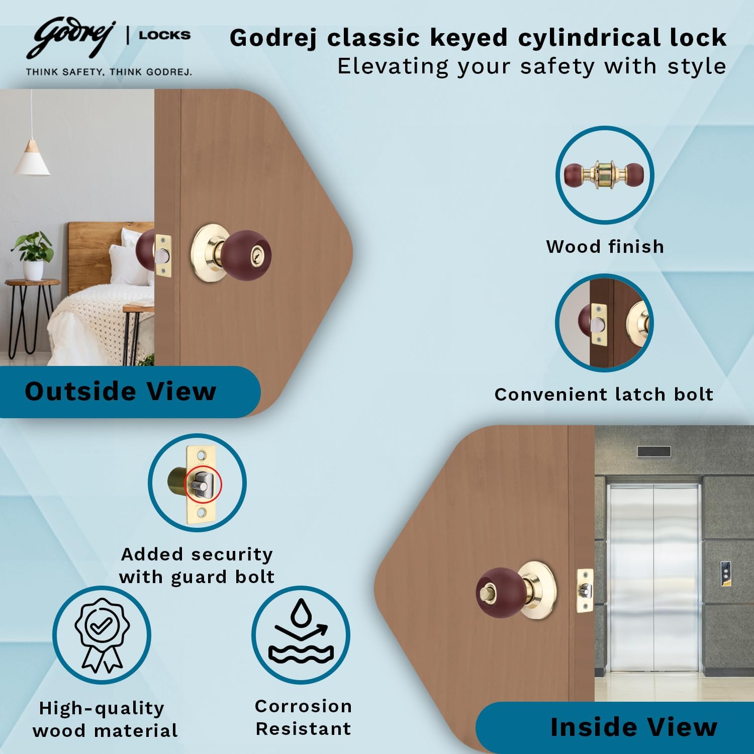 Godrej Locks classic wooden,Brass cylindrical 5809 with 3 keys (brown, Polished Finish,Pack of 1)