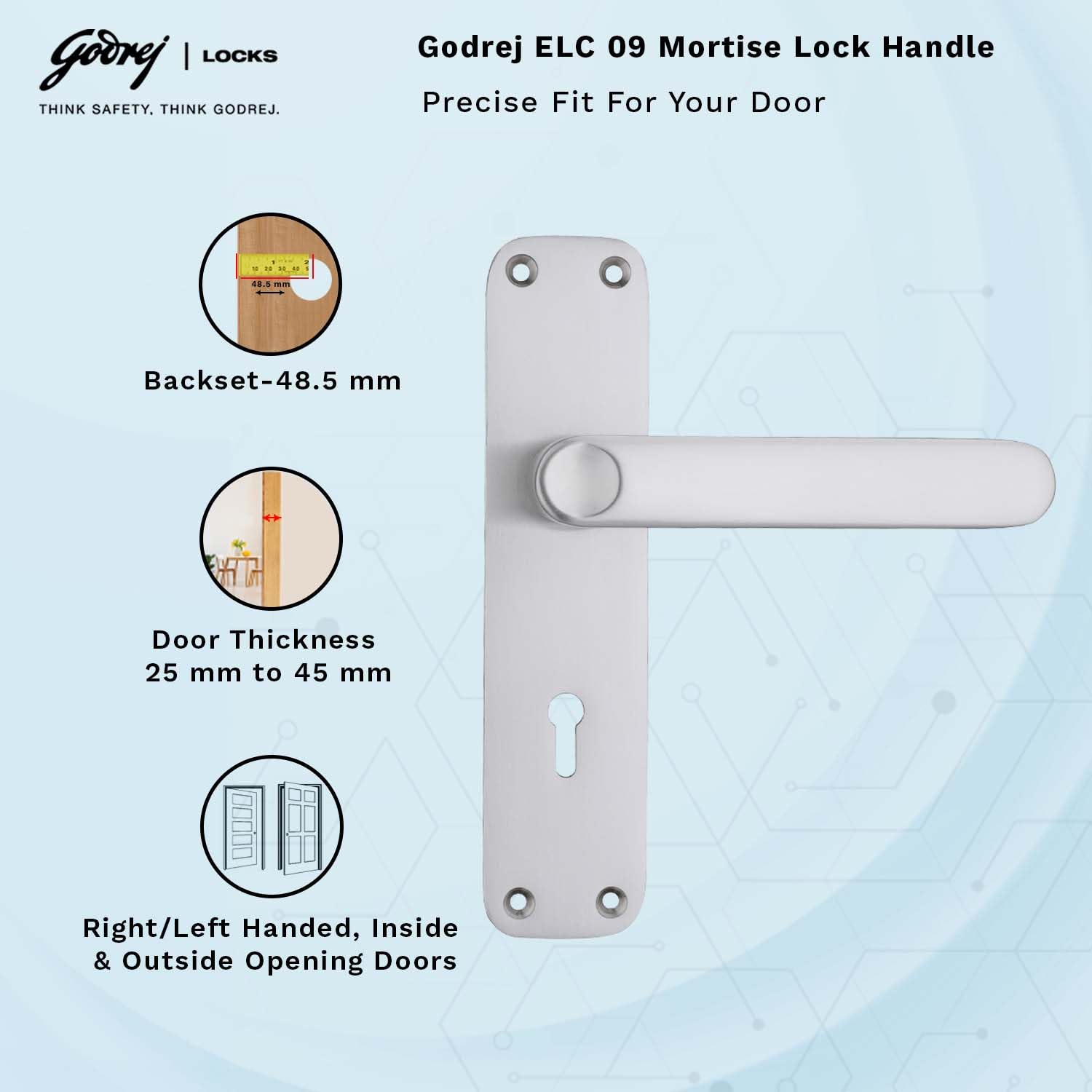 Godrej Mortise Door Lock | Handle Set | ELC 09 | 6-Lever Locking Mechanism | Reversible Latch | for Home & Office | for Wooden Doors | Satinless Finish | 5 Year Warranty