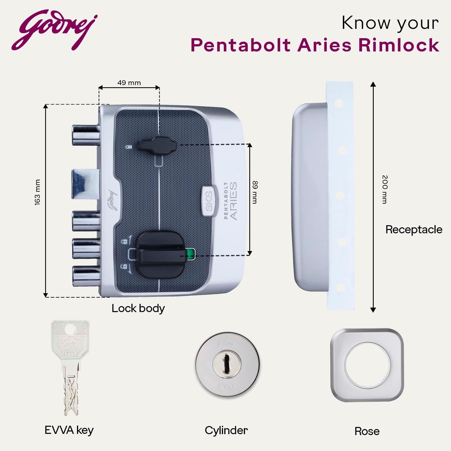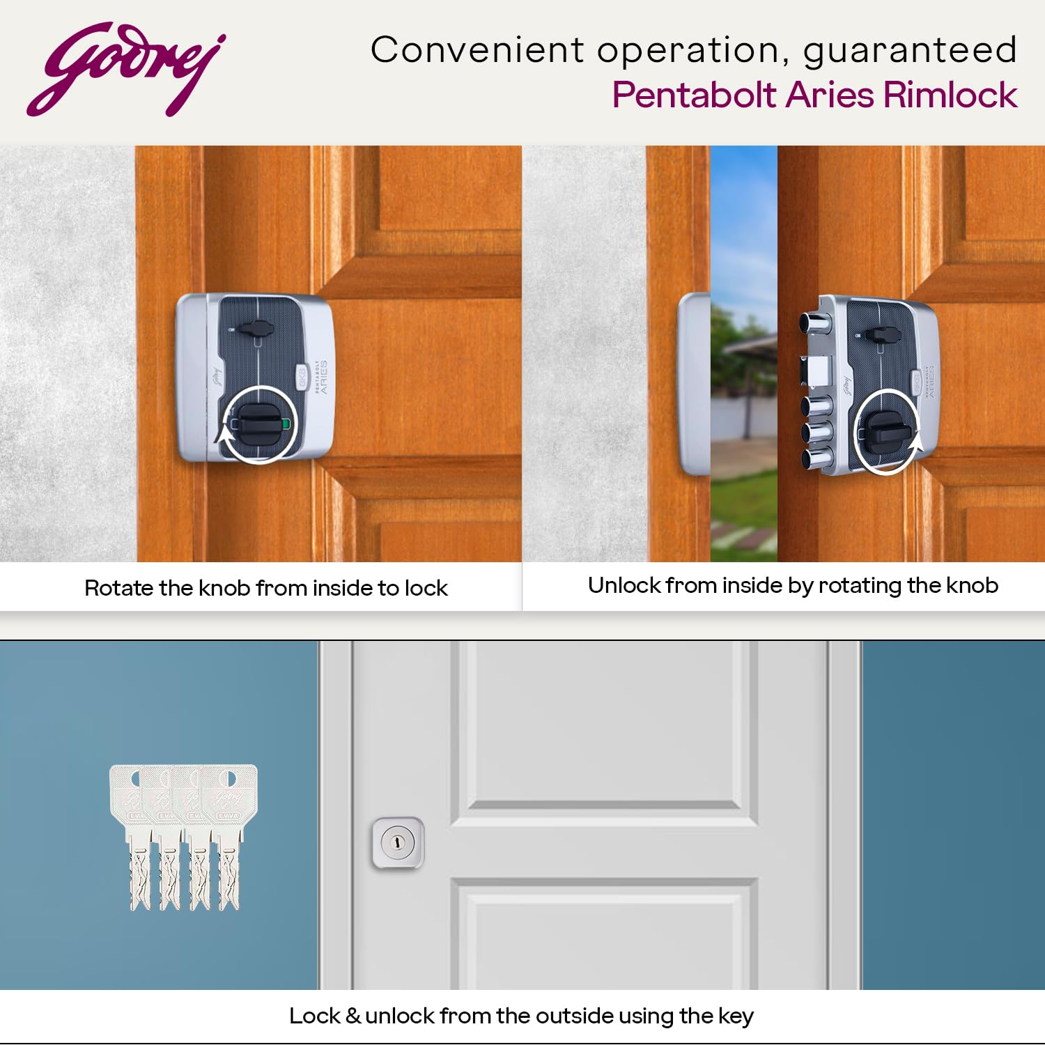 5 Strong Locking Bolts. 22mm double throw main bolts Provides Superior Locking for Highest Safety