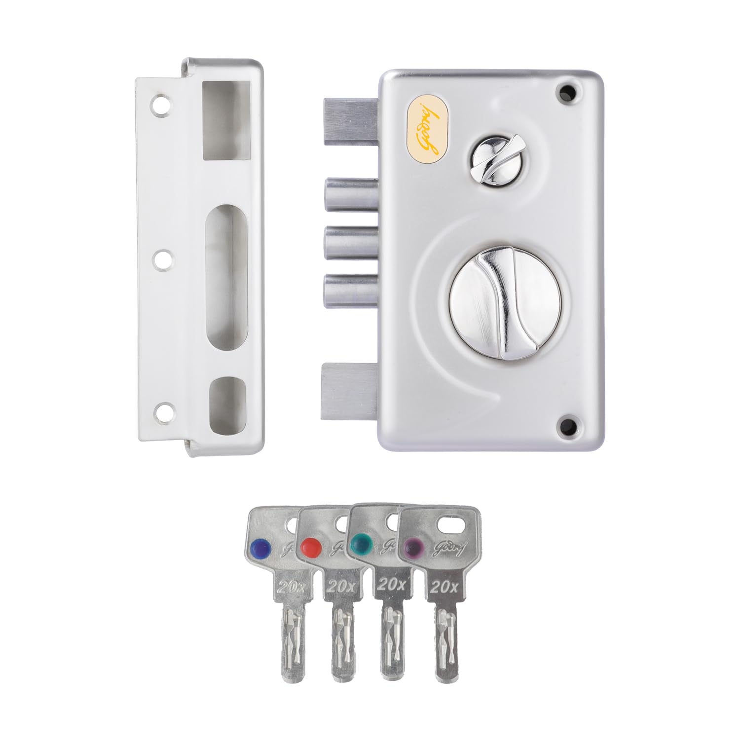 Introducing the epitome of security and convenience: Godrej Rim Locks. Featuring a cutting-edge design with a 16 angular pin formation, these locks ensure smooth reversible operation, making securing your space effortless. With a convenient hold-back facility, accidental lock-outs become a thing of the past, while an astonishing 200 crore key combinations resists any attempt to duplicate, guaranteeing unmatched security. Equipped with 5 strong locking bolts, these locks provide superior locking, ensuring the safety of your loved ones and possessions. The scratch-resistant Satin Nickel finish, complemented by electrophoretic lacquering, not only enhances the aesthetic appeal but also enhances durability. Crafted with a robust sheet metal body, these locks offer inherent strength, providing a comprehensive barrier against unwanted intrusions. Ideal for left and right-handed inside opening ranging from 30mm (3.0cm) to 90mm (9.0) in thickness, with a 60mm (6.0cm) backset, these locks offer versatility without compromising on security.
