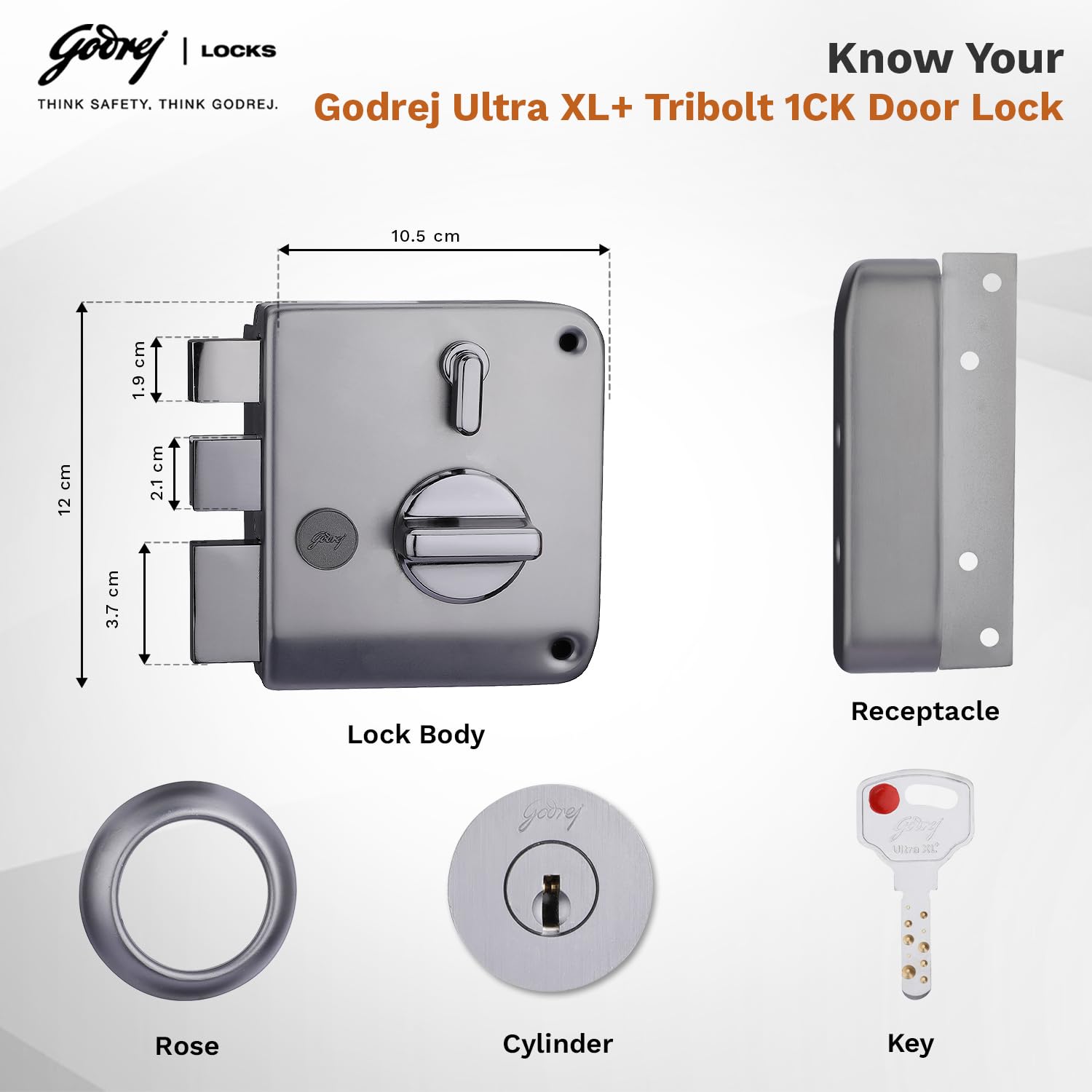 Unmatched Security – Extra-long and wide reinforced receptacle provides maximum resistance from burglar attacks. 21mm double throw with 20% wider and thicker bolts guarantee optimum security