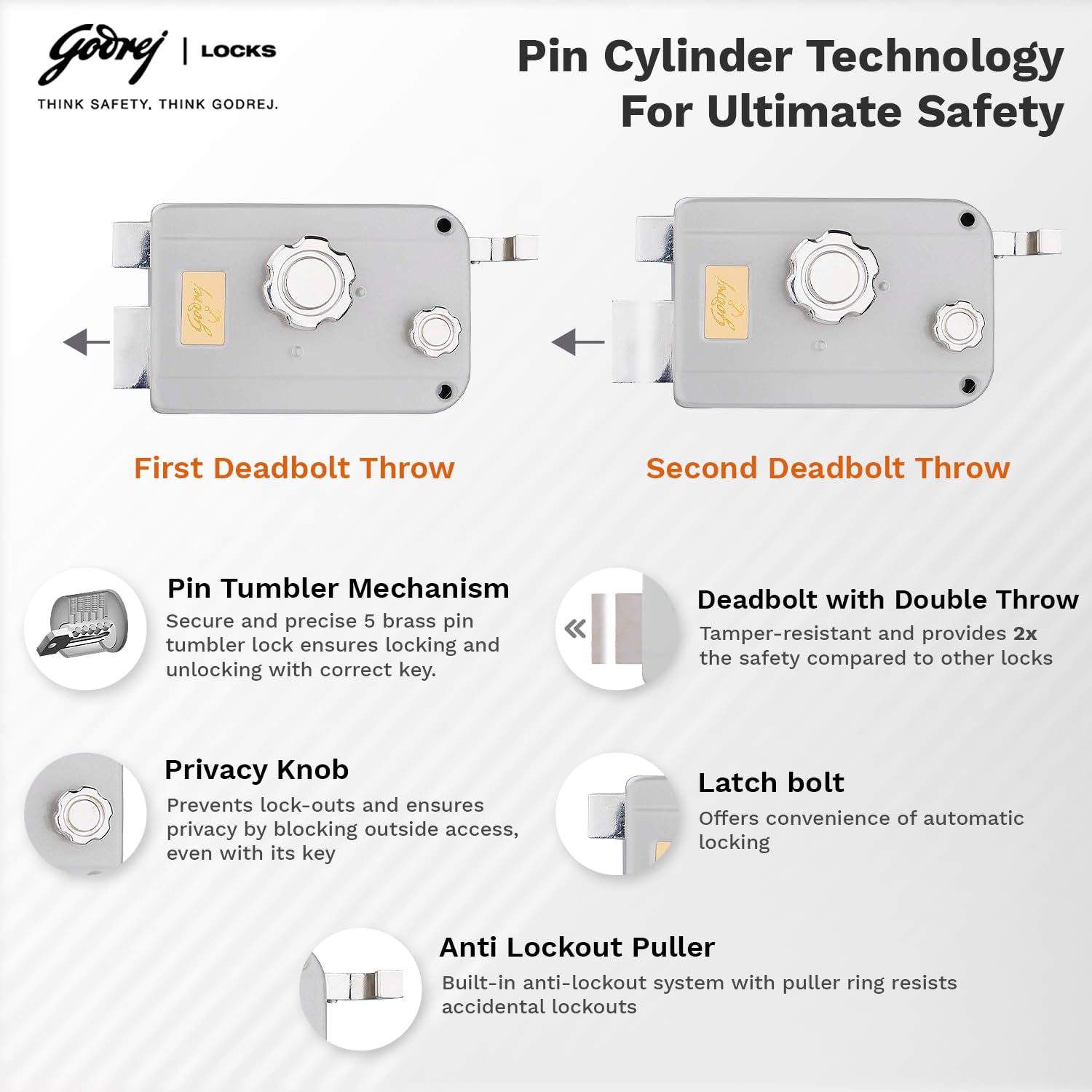Unmatched Security – Deadbolt along with Latchbolt for double protection. Deadbolt with double throw for extra security.