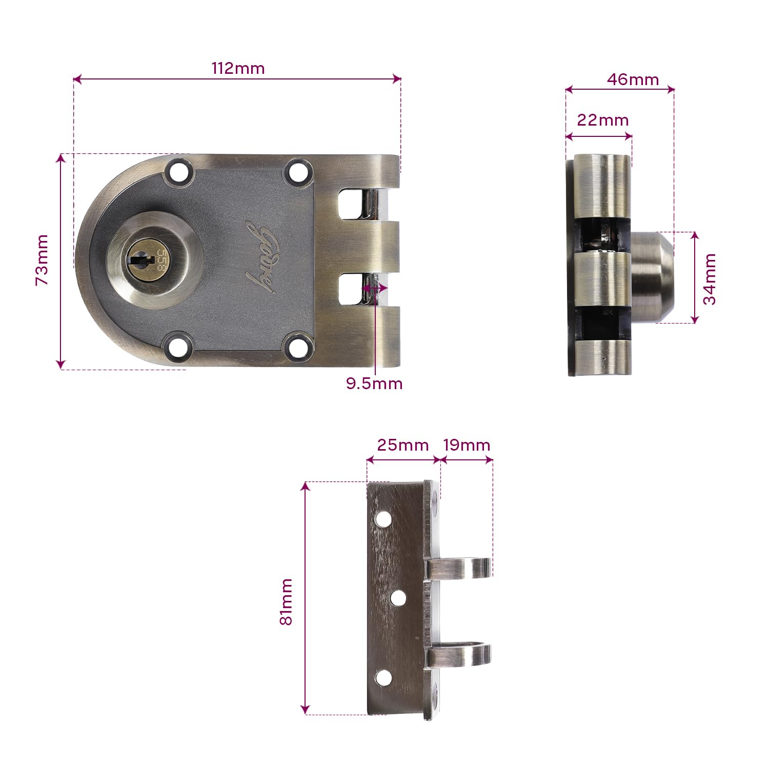 4 Durable Brass Key: The specially designed Ultra Key in brass resists bending, is reversible, and is easy to use. Lock comes with 4 Keys.