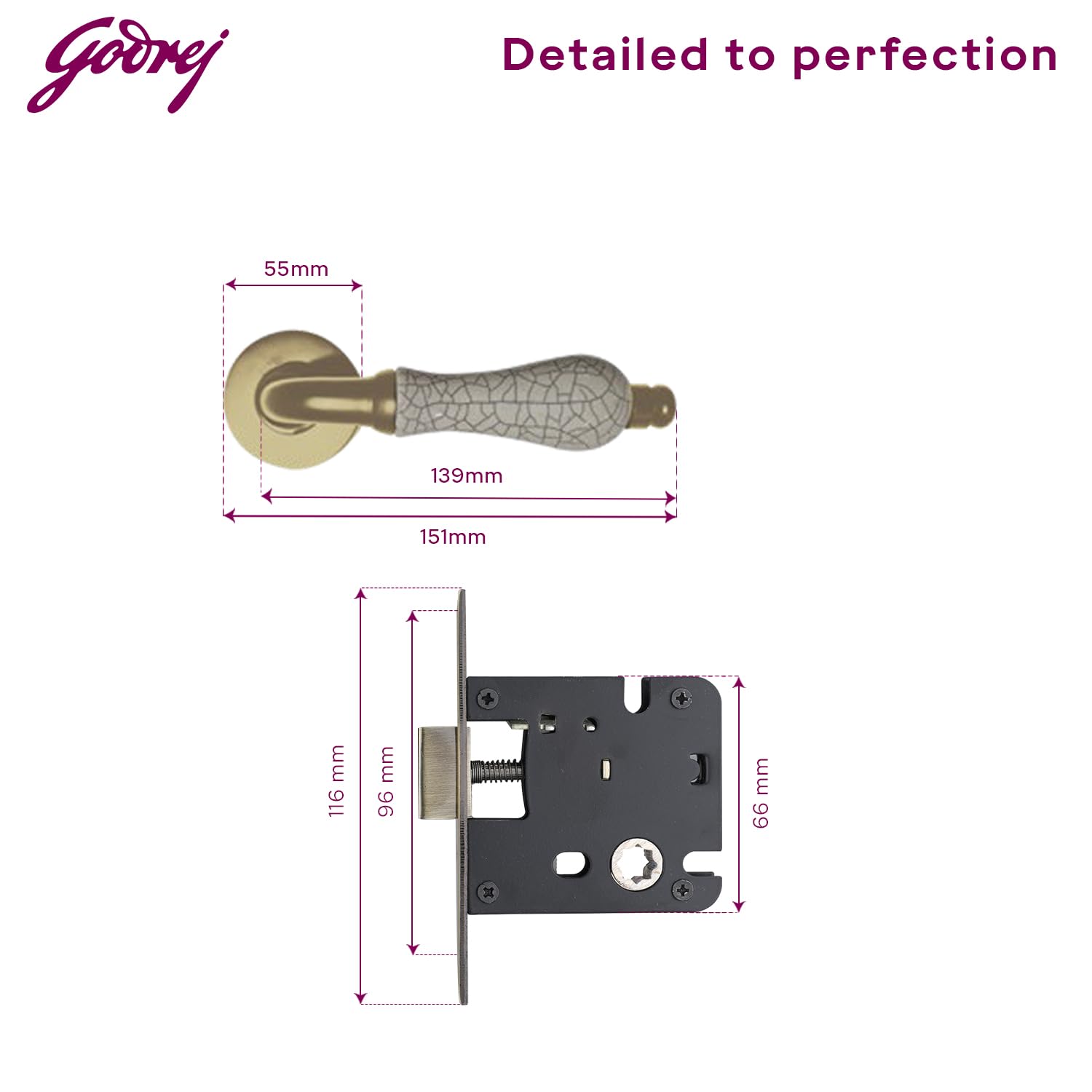 Godrej Rosette Handle | Zinc Die-Cast Alloy | Antique Brass Finish | Europrofile Mortise Lock | Reversible Babylatch | Residential & Commercial Use | Life Cycle Tested 1 Lakh | 5-Year Warranty