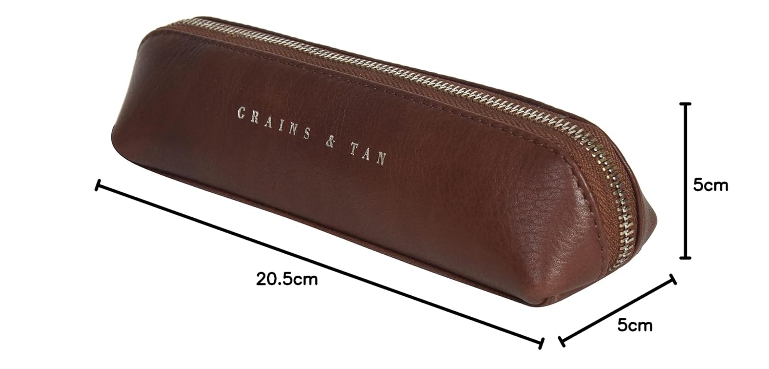 Comes with one main compartmentMade from 100% natural and sustainable leatherHigh-quality zipper for easy maneuverabilityPremium stripe fabric lining for contrastLight-weight pencil case and easy to carryEasy to store in your handbag, luggage, backpack, etc.